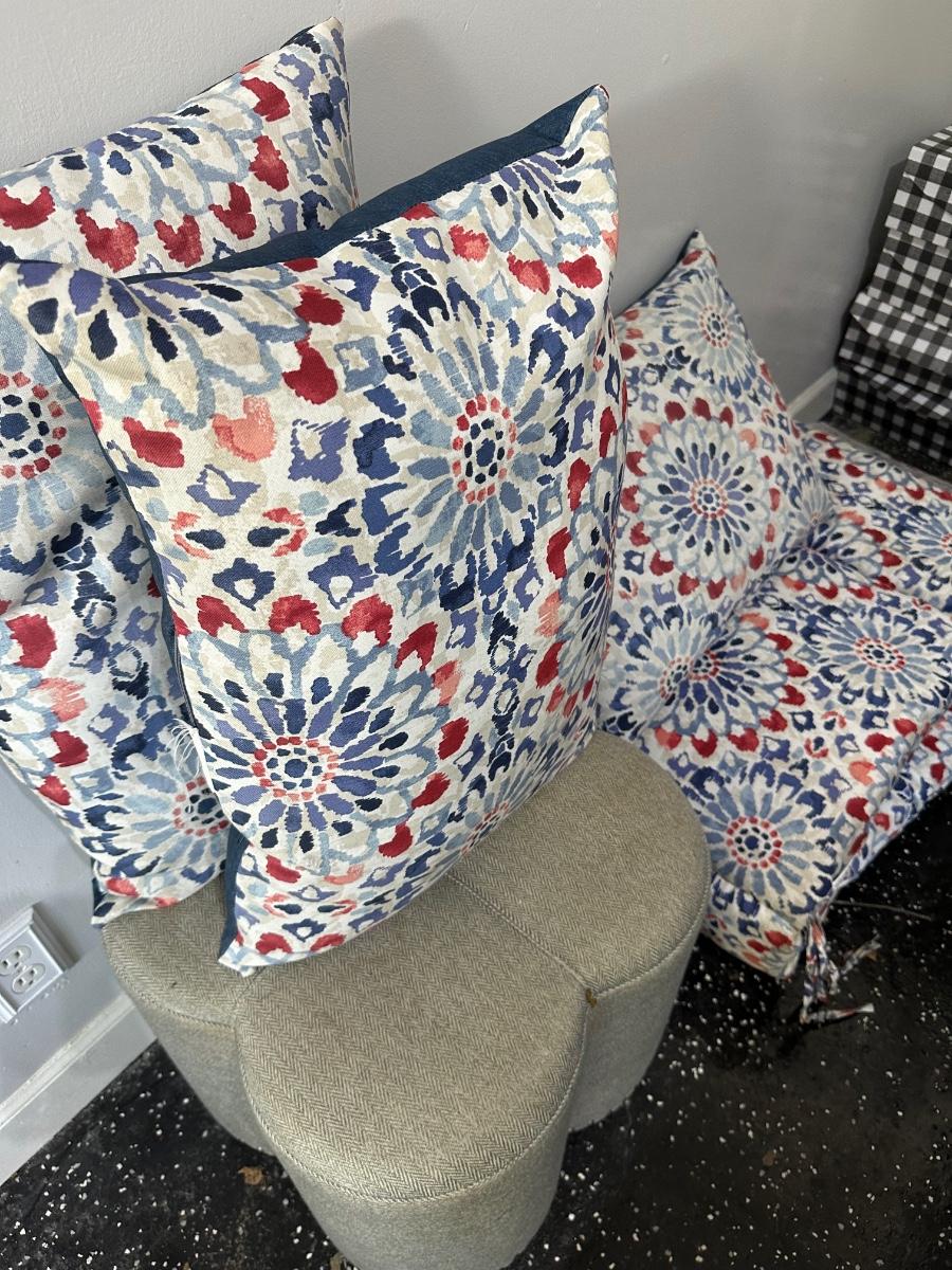 CHAISE LOUNGE CUSHION, PILLOWS, OTTOMAN