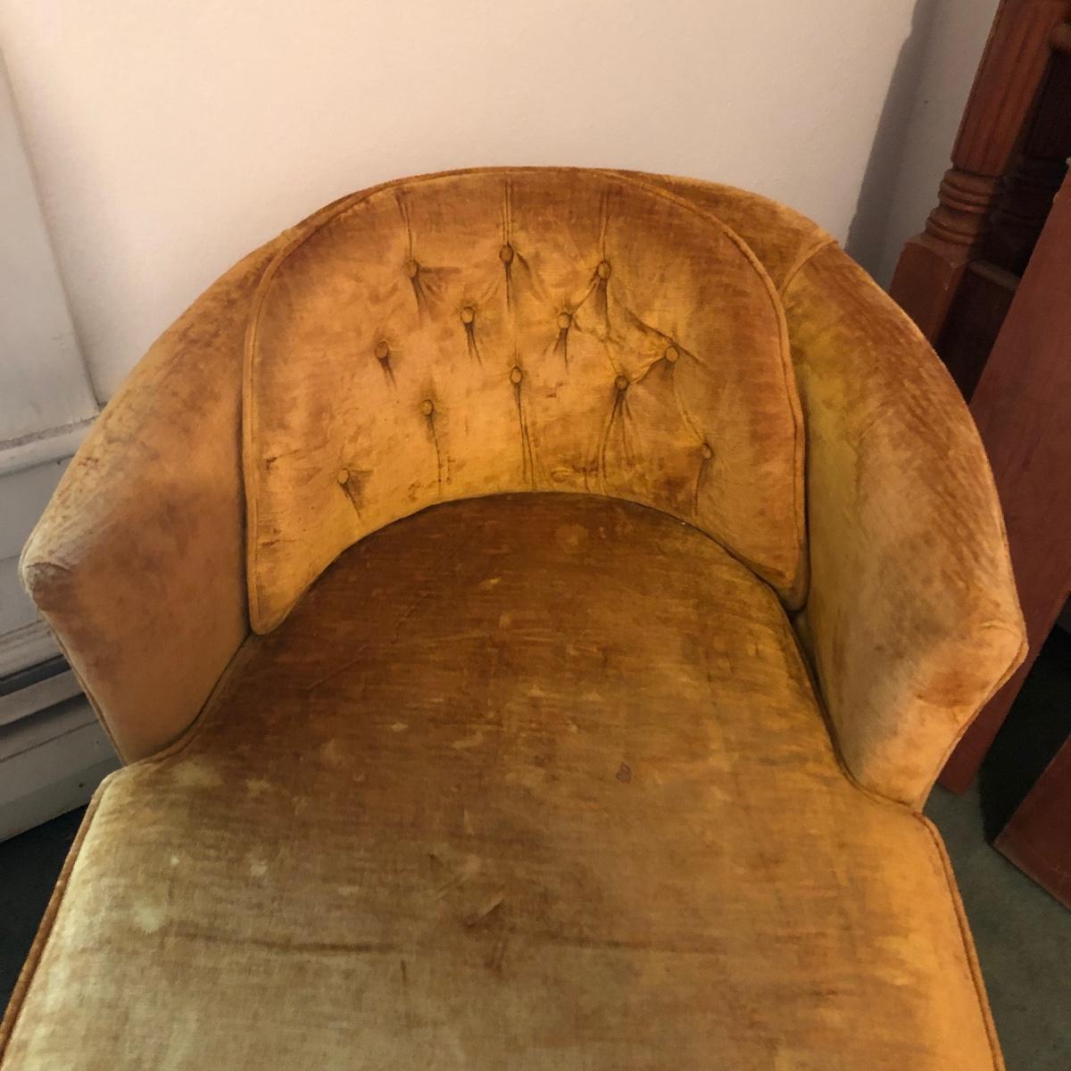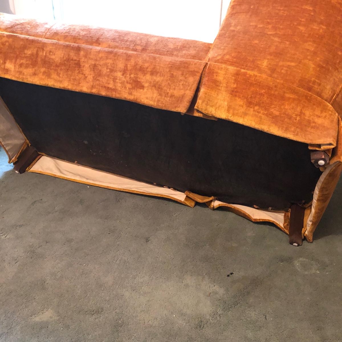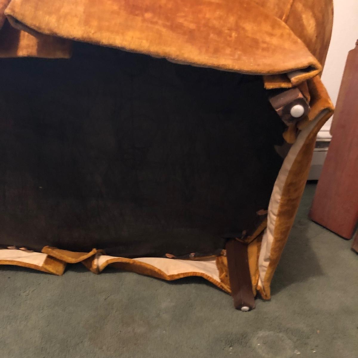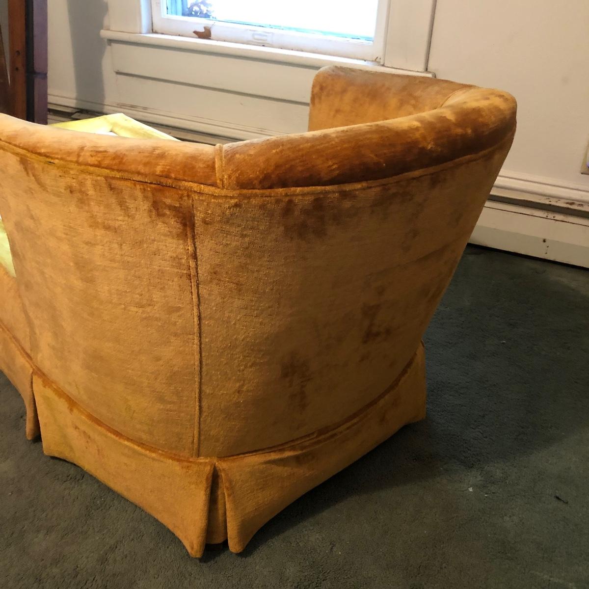 Lot includes Chaise Lounge made by Perfection Furniture Co. with removable back and bottom cushions. Lounge is in a deep gold color and is in good shape with a few wear spots on cushion, but is in overall good shape, see pictures. Lounge measures 26” x 65” x 27” with a seat height of 17”. Bring help item is substantial and up one flight of stairs.