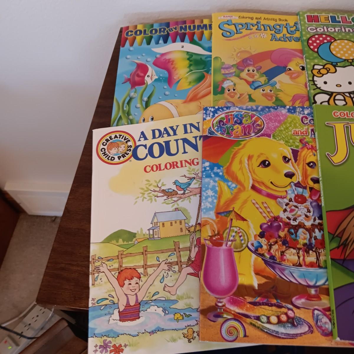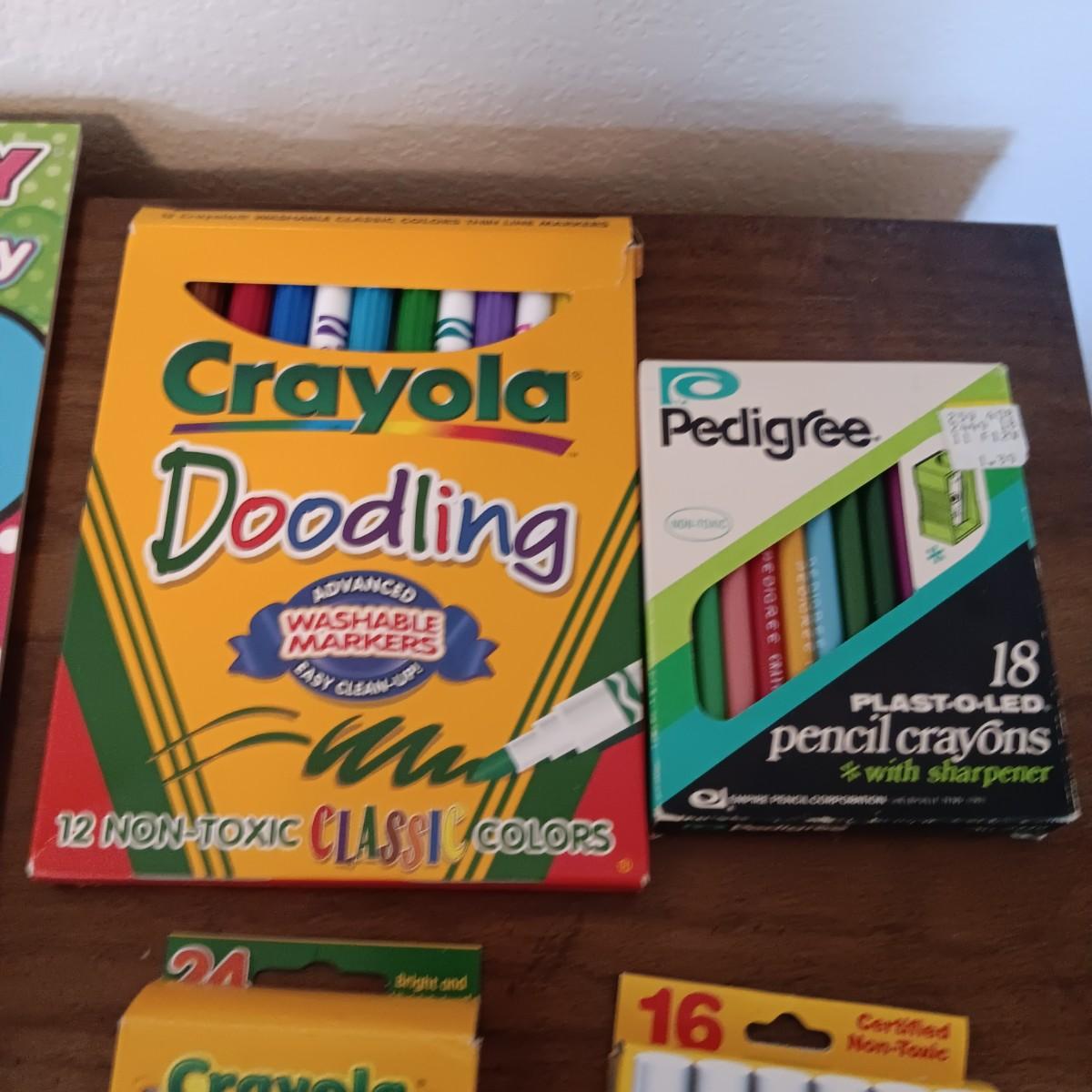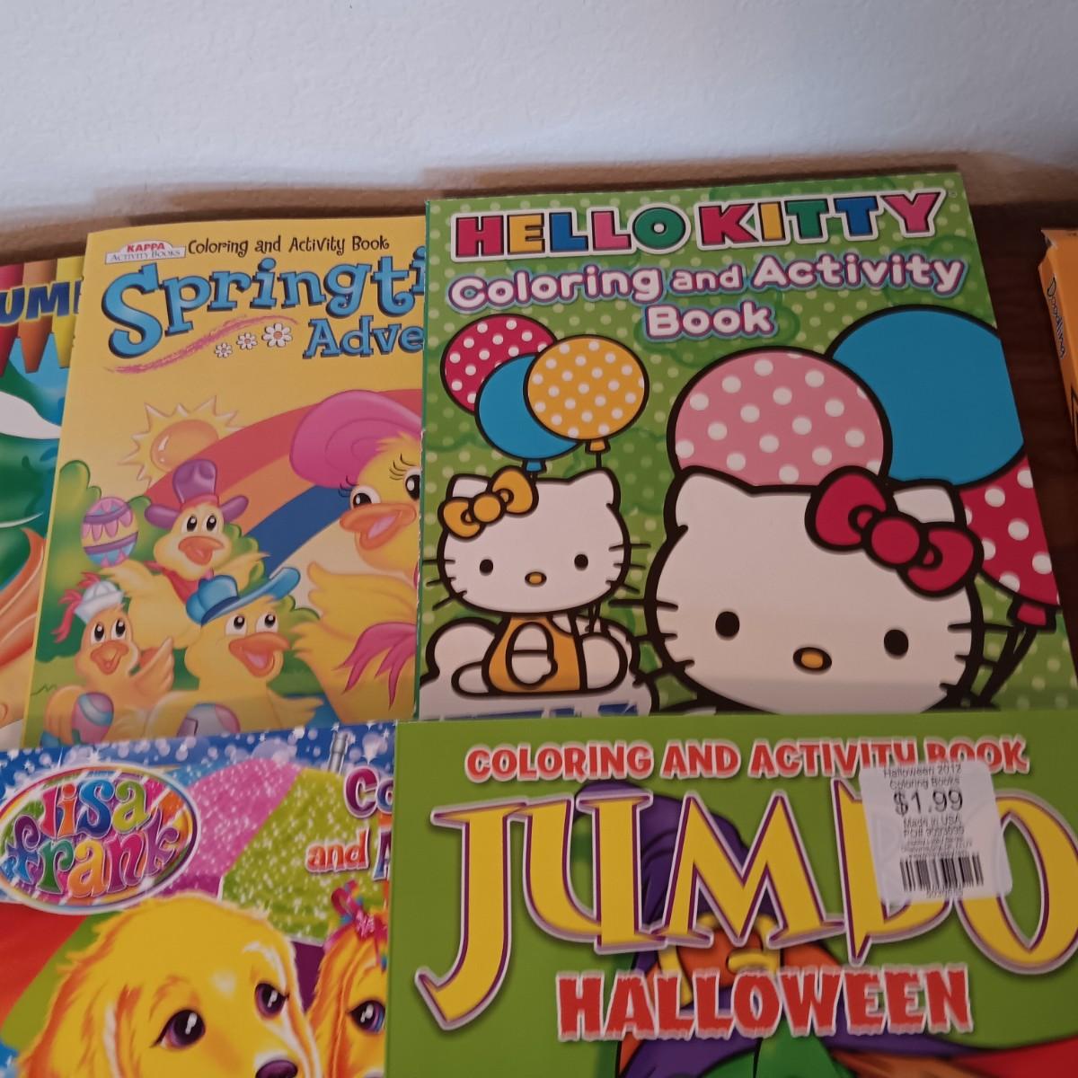 CHALK, COLORED PENCILS, MARKERS AND COLORING BOOKS
