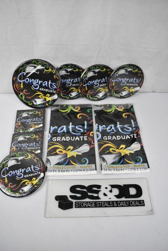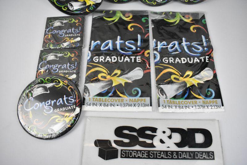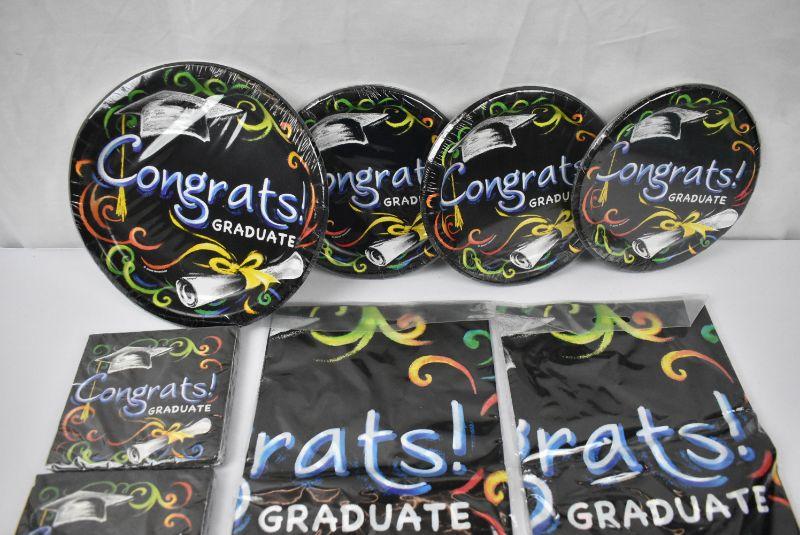 Chalkboard Graduation Paper Dinner Plates, 9in, 8ct, 4 packages Paper Dessert Plates, 7in, 8ct, 2 packages You Did It! Graduation Paper Beverage Napkins, 5 in, 16ct & 2 Chalkboard Graduation Plastic Rectangle Table Cover, 54 x 84 in - New