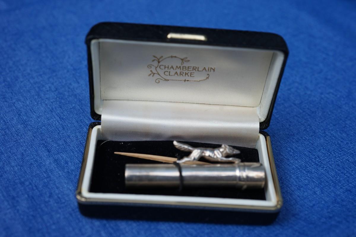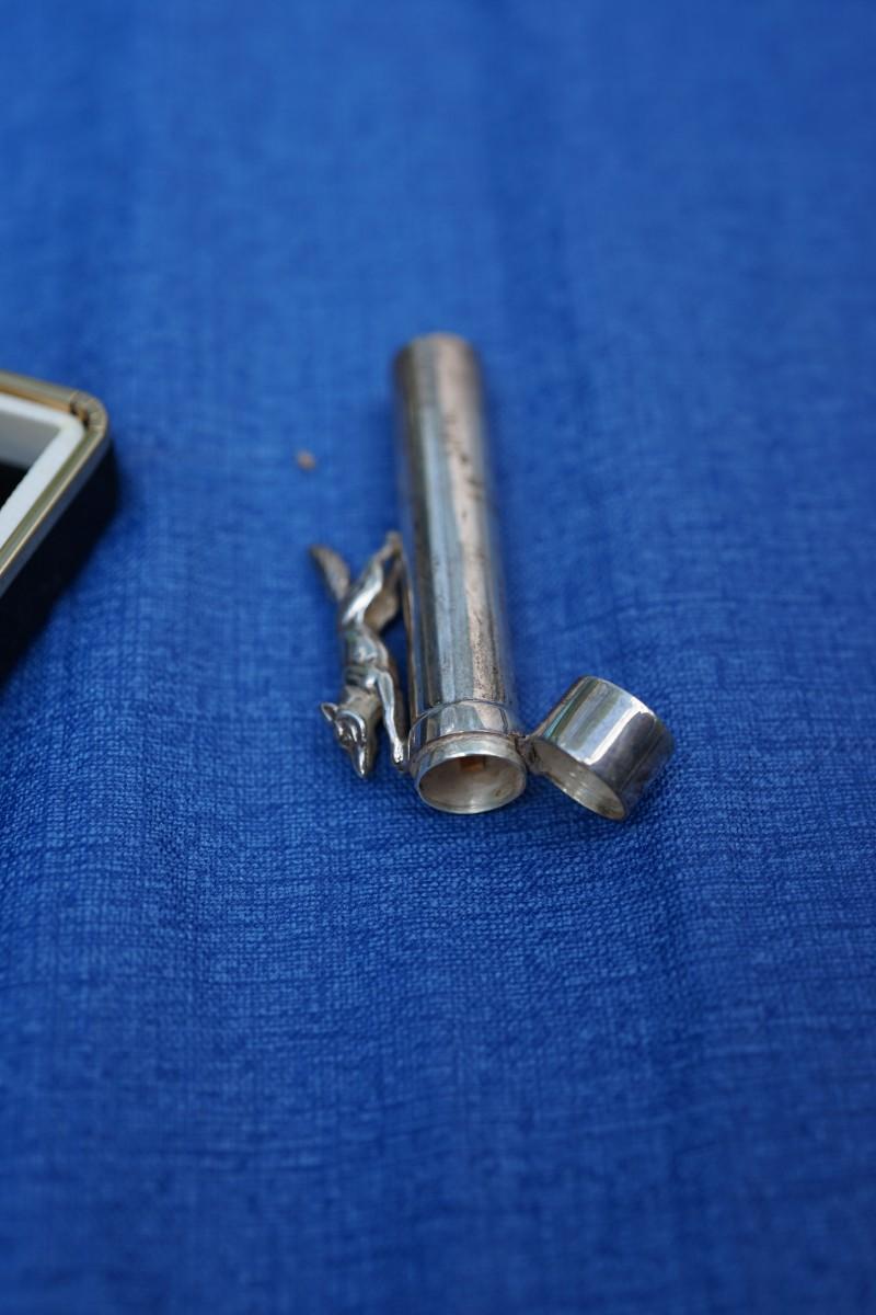 CHAMBERLAIN AND CLARKE SILVER TOOTHPICK HOLDER W/FOX FIGURE
