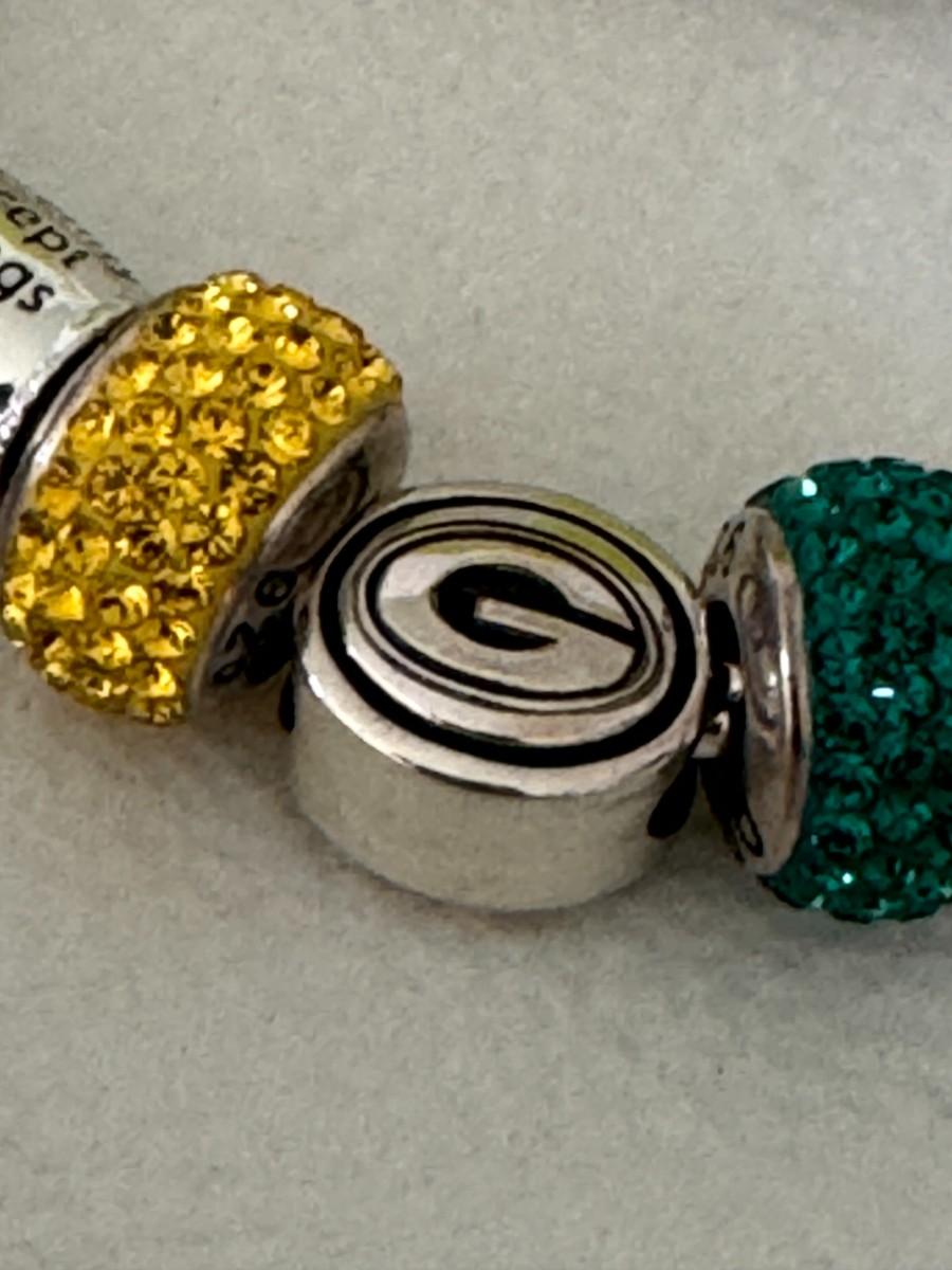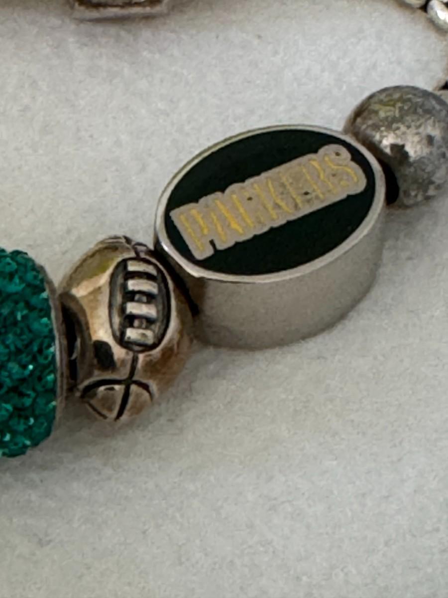 Green Bay Packers Theme: Several charms represent the Green Bay Packers NFL team, using team colors (green and gold) and possibly team logos or related designs.