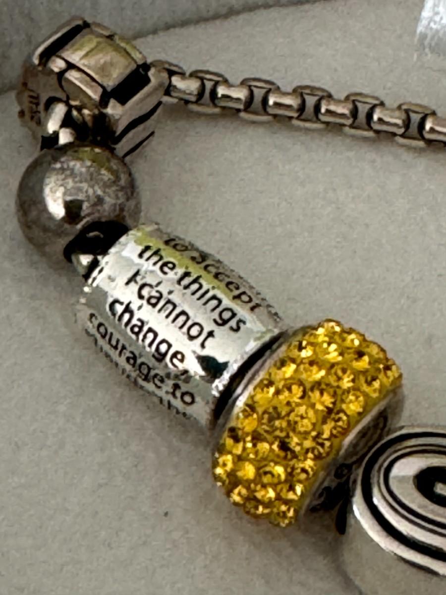 Inspirational Charm: The charm with "the things I cannot" suggests an AA, inspirational or motivational theme, which is common in charm bracelet collections.