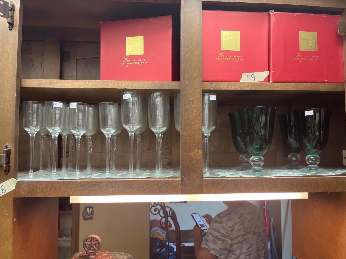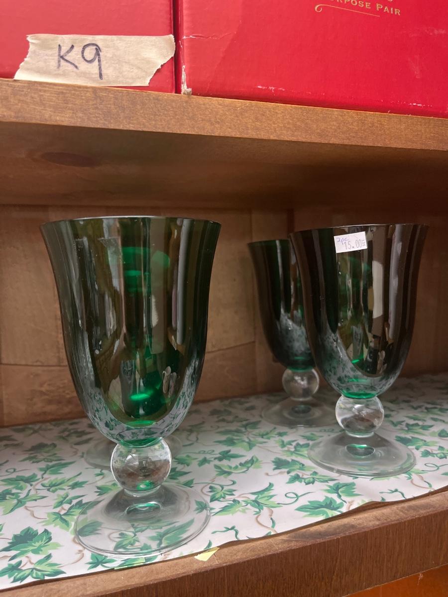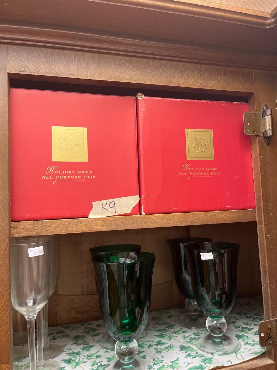Champagne glasses and 14 holiday gems all purpose glasses (green)