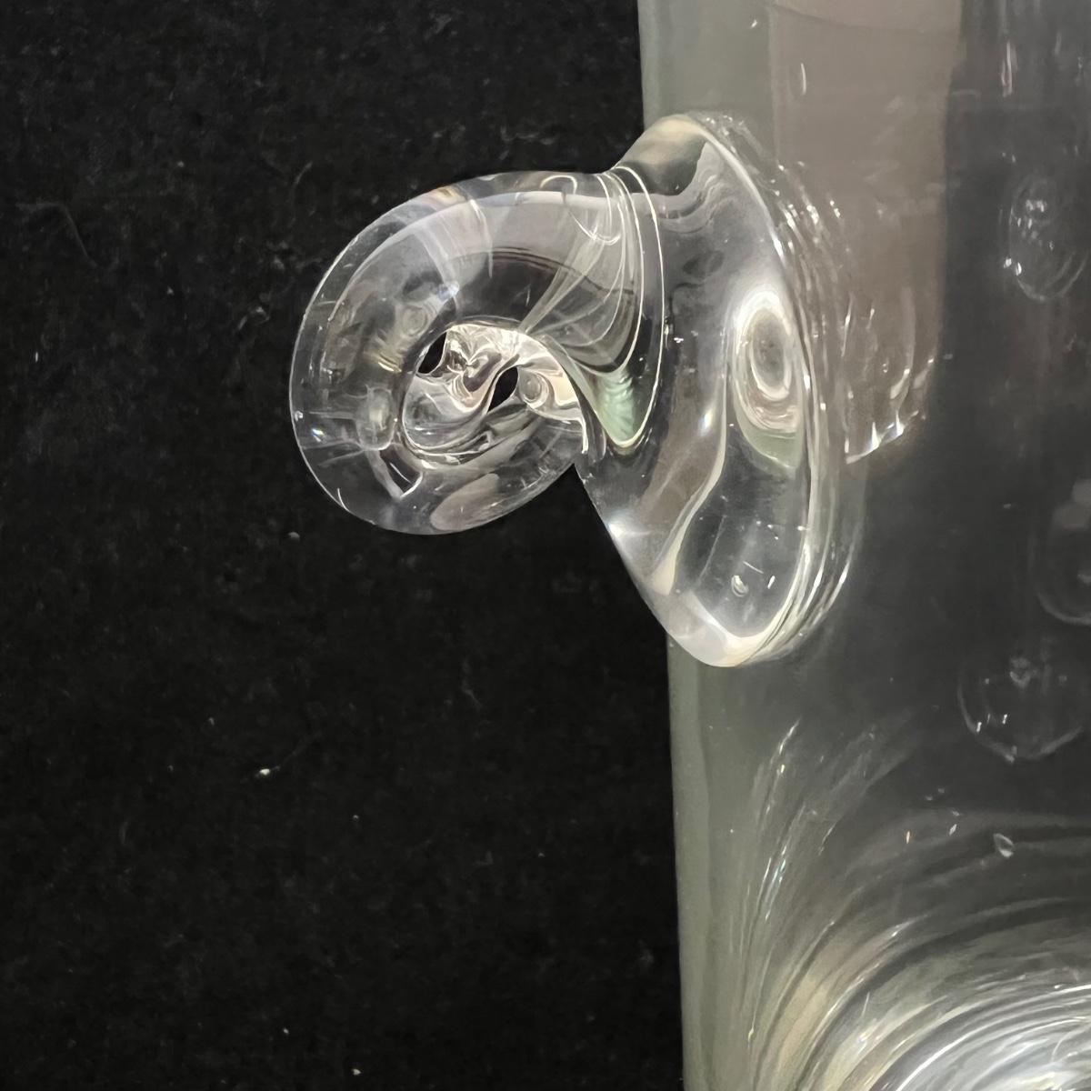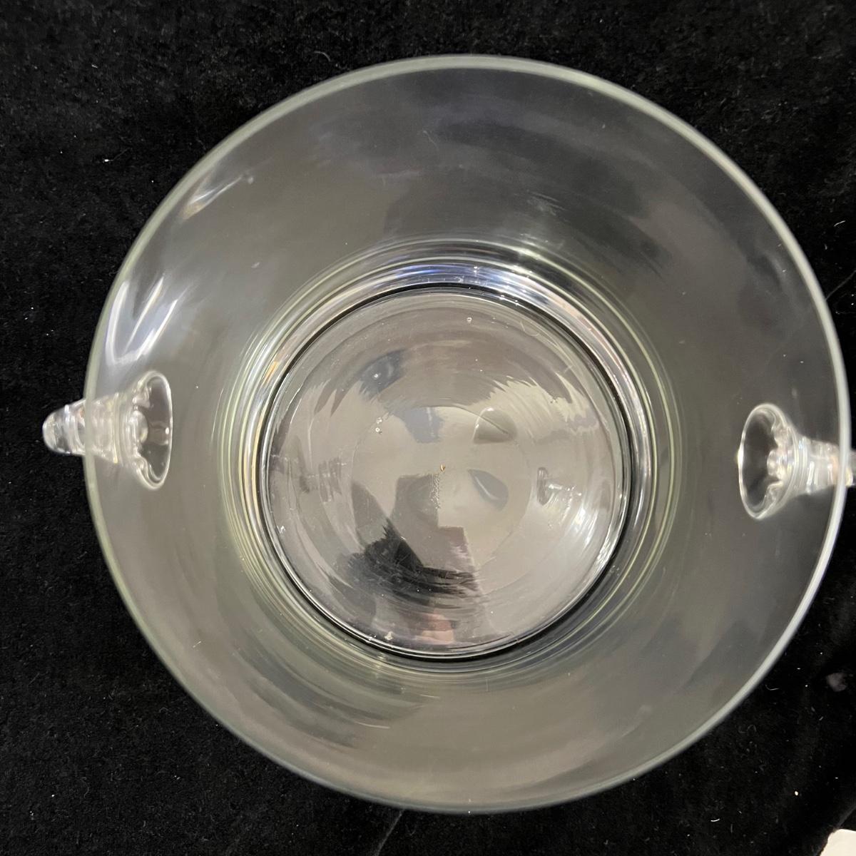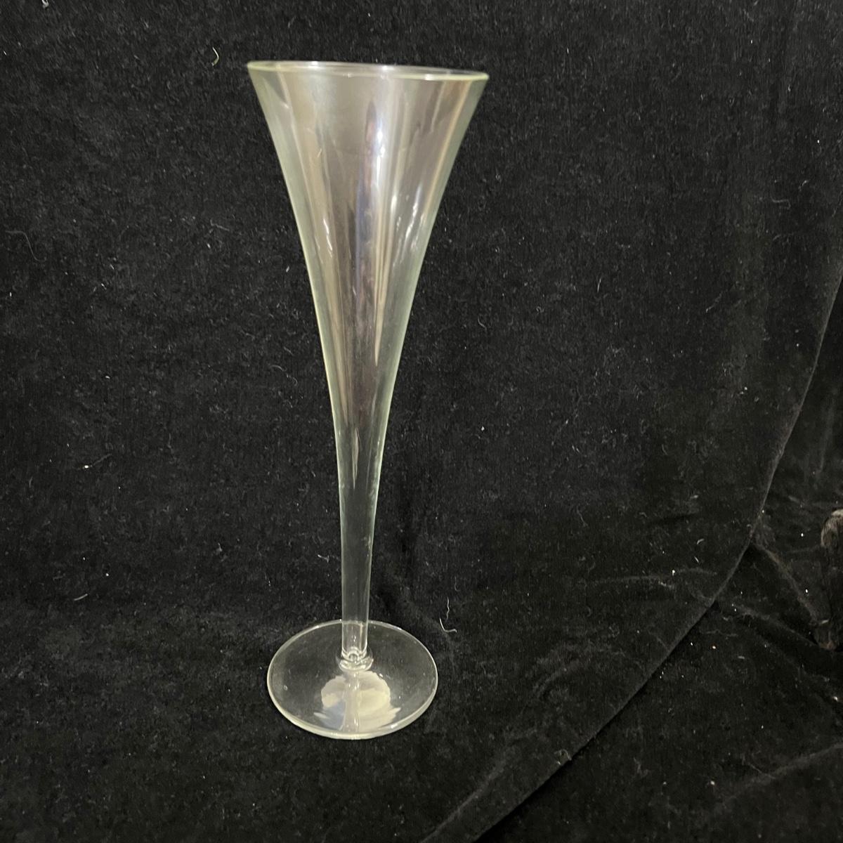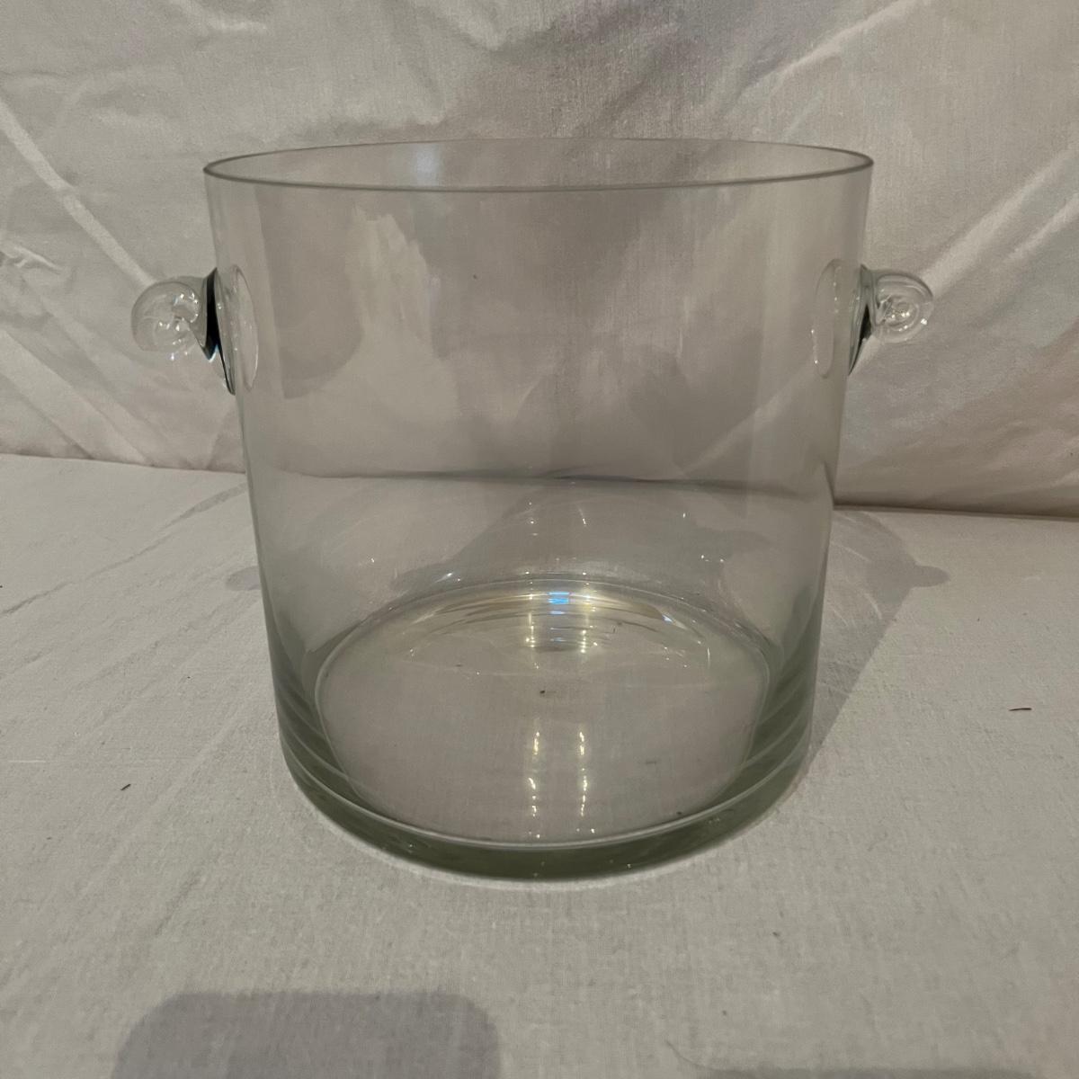 Two types of champagne glasses. 6 fluted and 11 parfait style. The six tall fluted glasses are 3.25”D x 9.25”H. The 11 parfait style glasses are 2.5”D x 6.25”H. The handled glass ice bucket is 7.5”D x 7.5”H. Items could use a good cleaning, but appear to be in good condition. Shipping available.