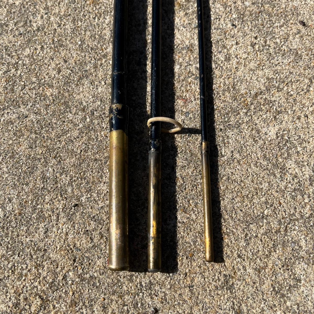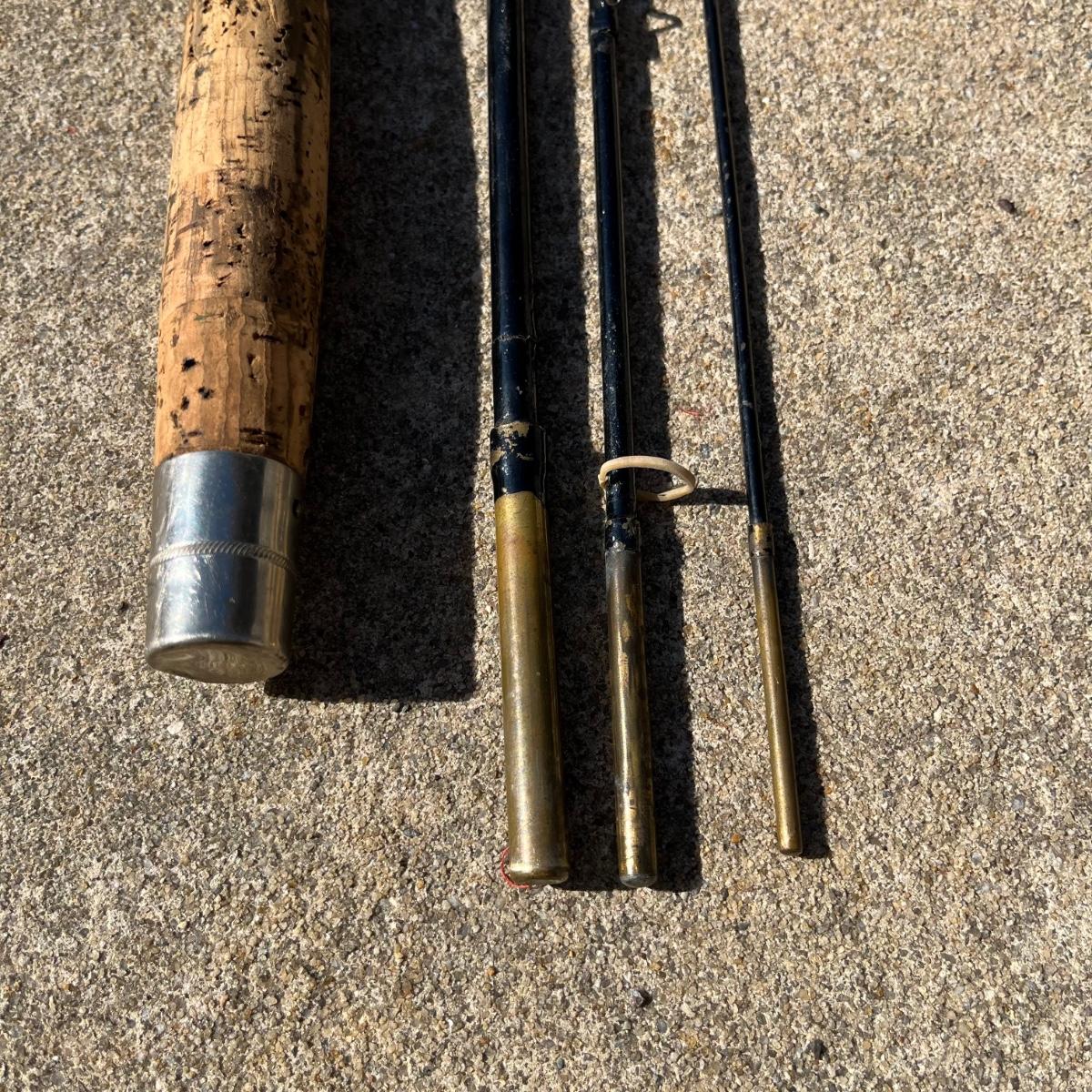 Lot includes a four piece Champion fishing rod. Rod appears to be fiberglass, but has been painted so we cannot guarantee it. Rod together measures 98” long.