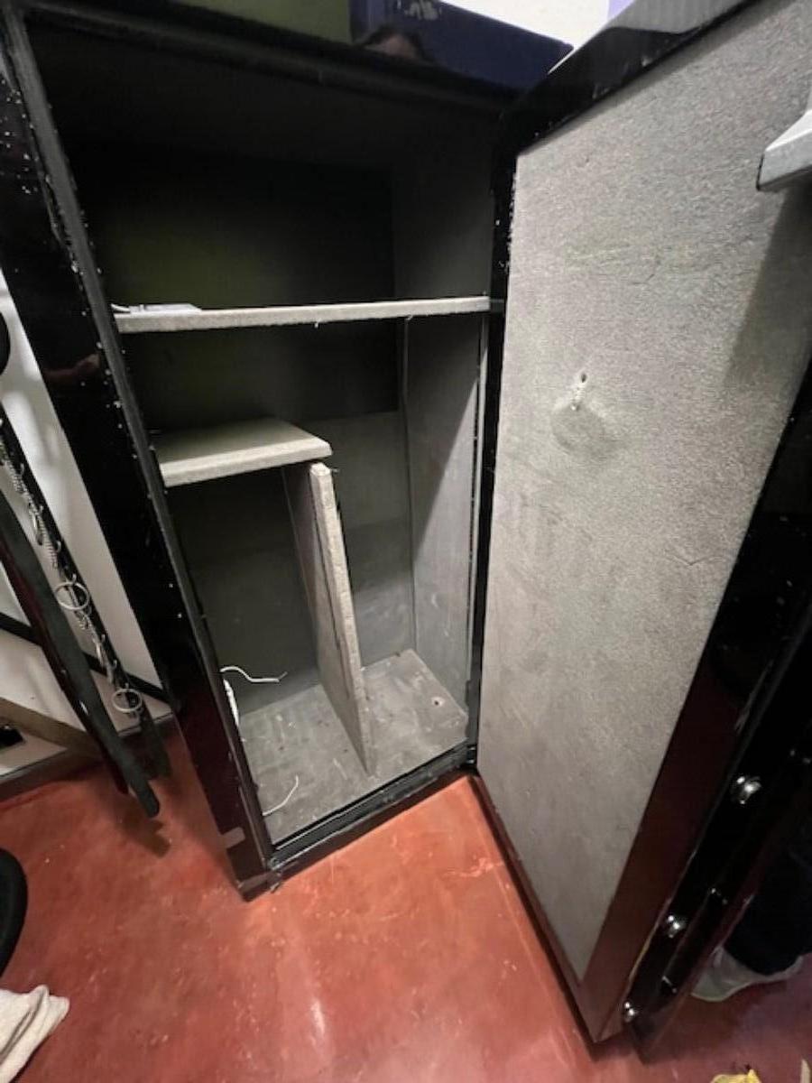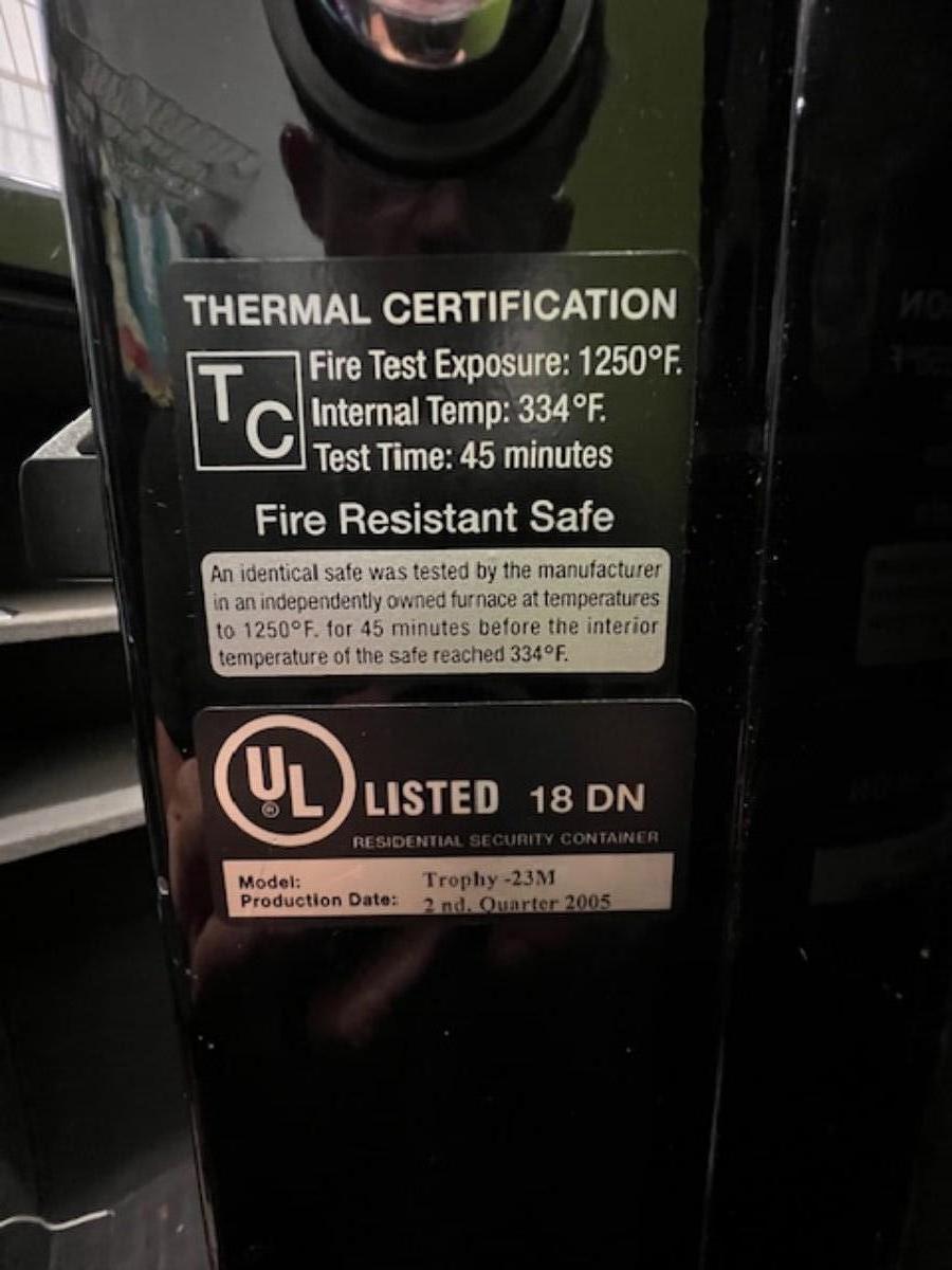 **THIS SAFE WEIGHS APPROXIMATELY 700 POUNDS. PLEASE BRING HELP TO MOVE/LOAD. STAFF WILL NOT BE AVAILABLE TO HELP.** Model Trophy 25-M. Made in 2005. Fire resistant. 4.75" composite door. Twenty-five gun safe. Measurement: 60"H x 30"W x 24"D.