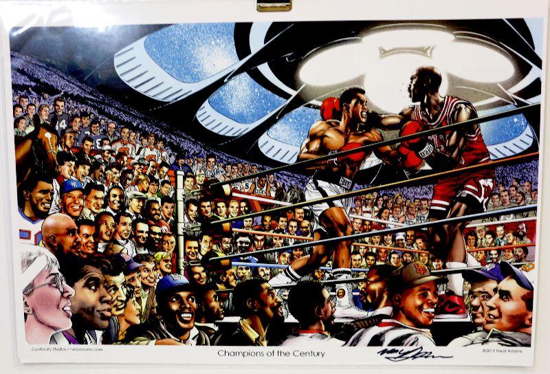 Champions of the Century Jordan/Muhammad Ali Comic Art Print Signed Neal Adams