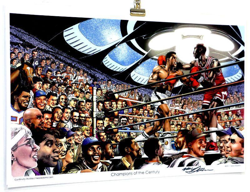 Champions of the Century - Original Comic Art Print hand signed by artist Neal Adams, high quality print in large size 13" x 19", ready for framing, includes the list of All the famous sports stars seen on the artwork, ships flat in safe packaging - Collector's Item!