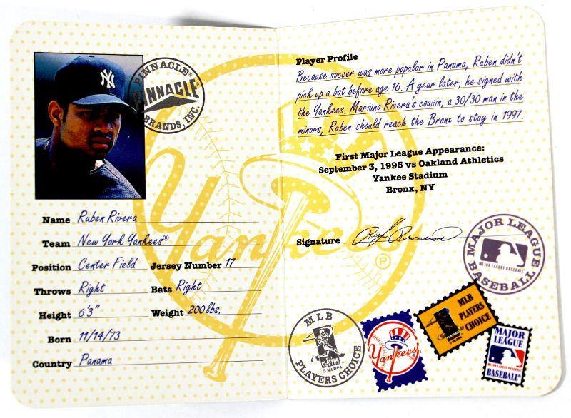 Set of 3 RARE 1997 Pinnacle Baseball Cards Inserts - Passport To The Majors, these are fold out baseball cards designed as passports - both in excellent condition - High Grade - Limited Edition Inserts - Collector's Item!