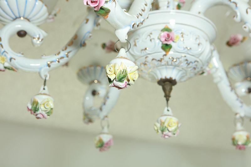 Vintage White & Pink Rose Capodimonte 5 Arm Chandelier YD#022-0028