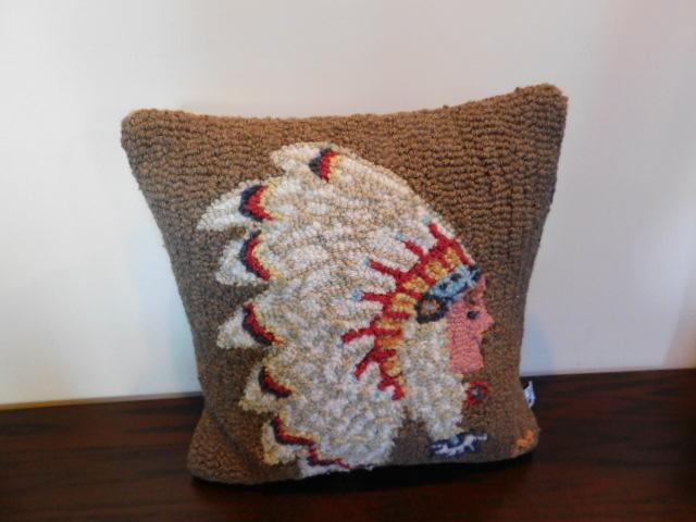 Chandler 4 Corners Wool Hooked Native American Chief Pillow 16"x16" Zippered Back in very good condition.