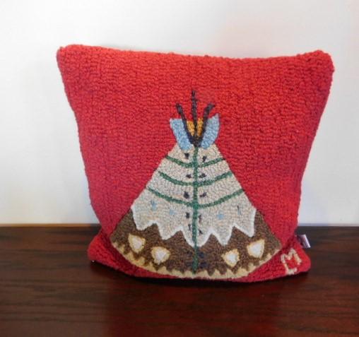 Chandler 4 Corners Wool Hooked Native American Teepee Pillow 16"x16" Zippered Back