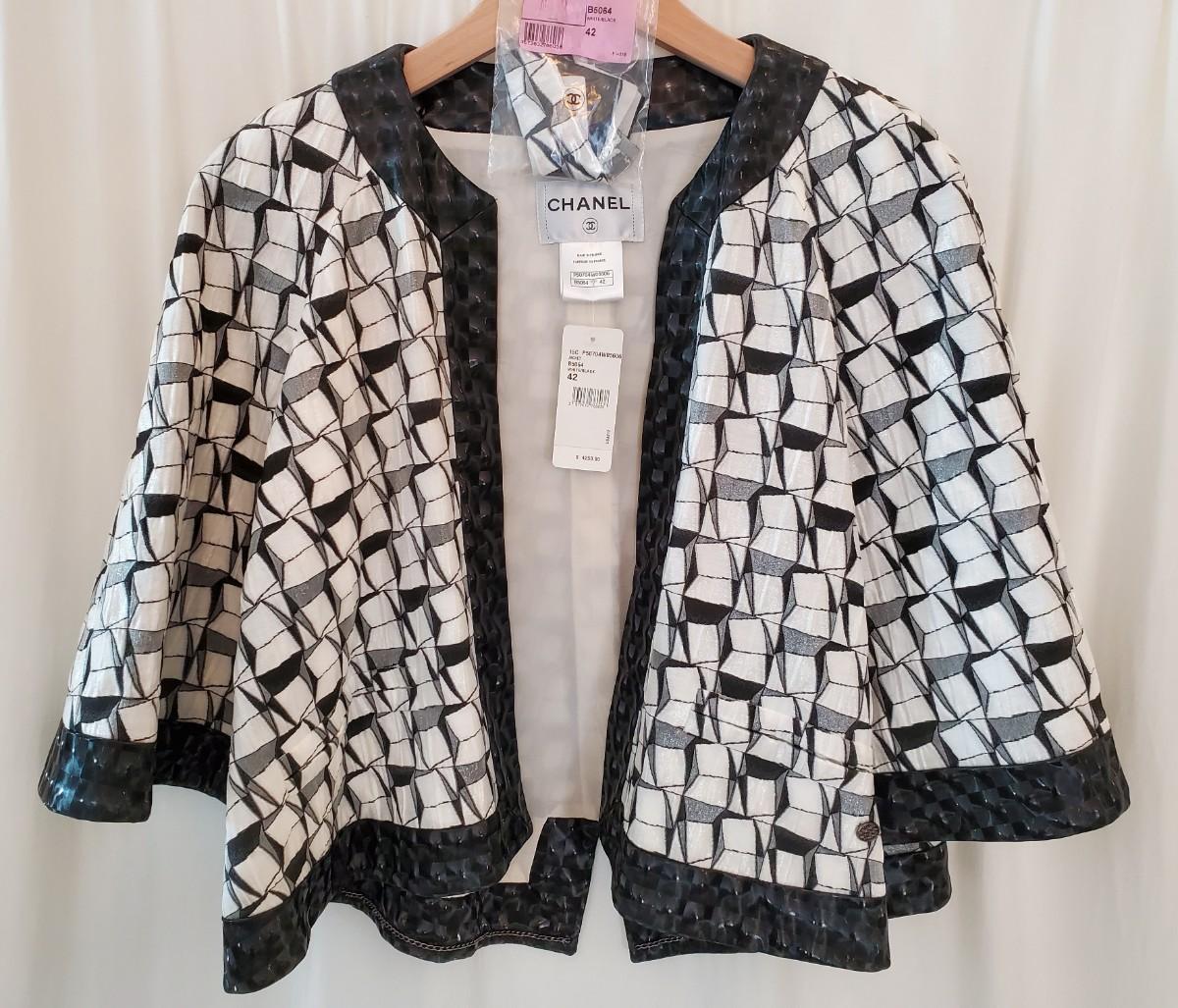 New/Old, unworn, with tags. Original tag price $4250. Featured in Karl Lagerfeld's Dubai Resort Runway collection of 2015. Made in France of cotton, nylon and silk with 100% silk lining. Size 42.