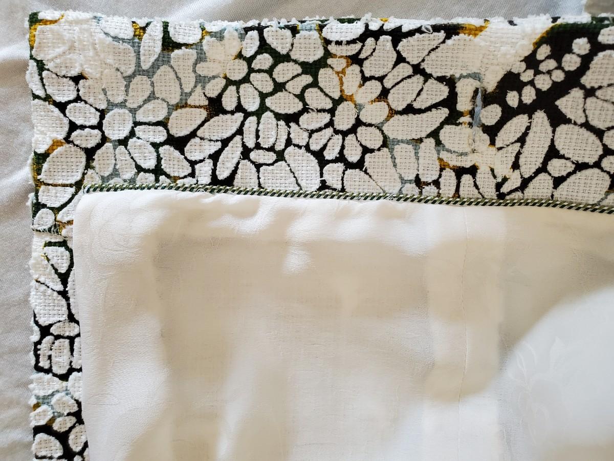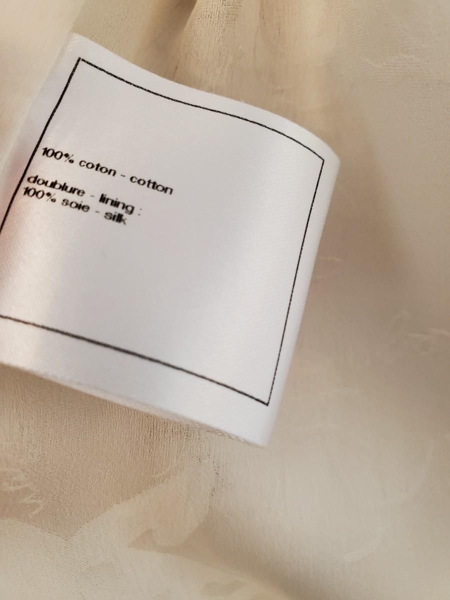 100% cotton with 100% silk logo lining. Wide 3/4 sleeve. 4 pockets