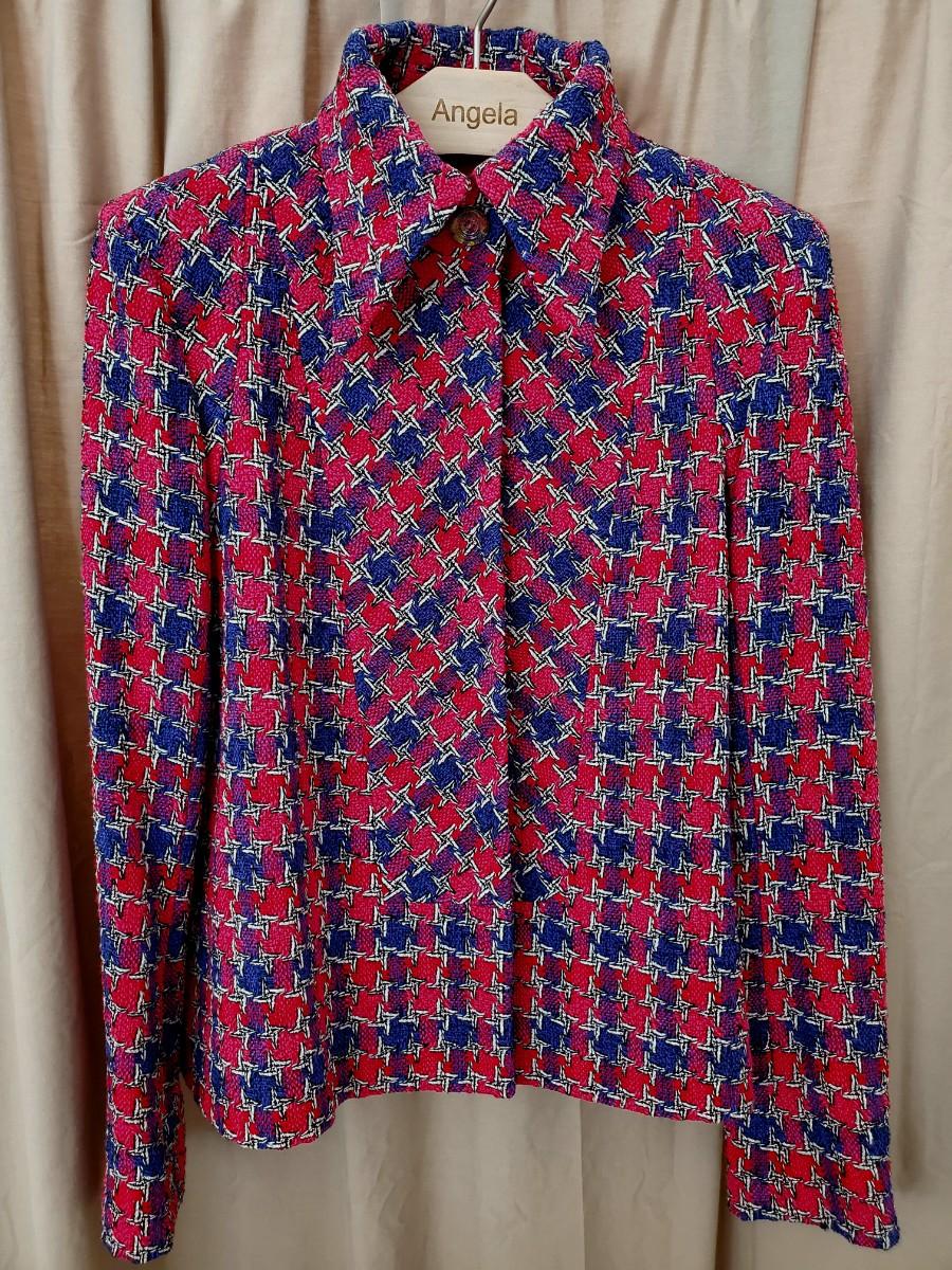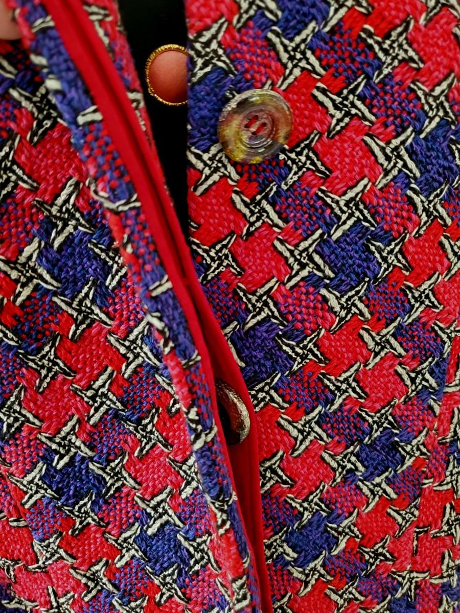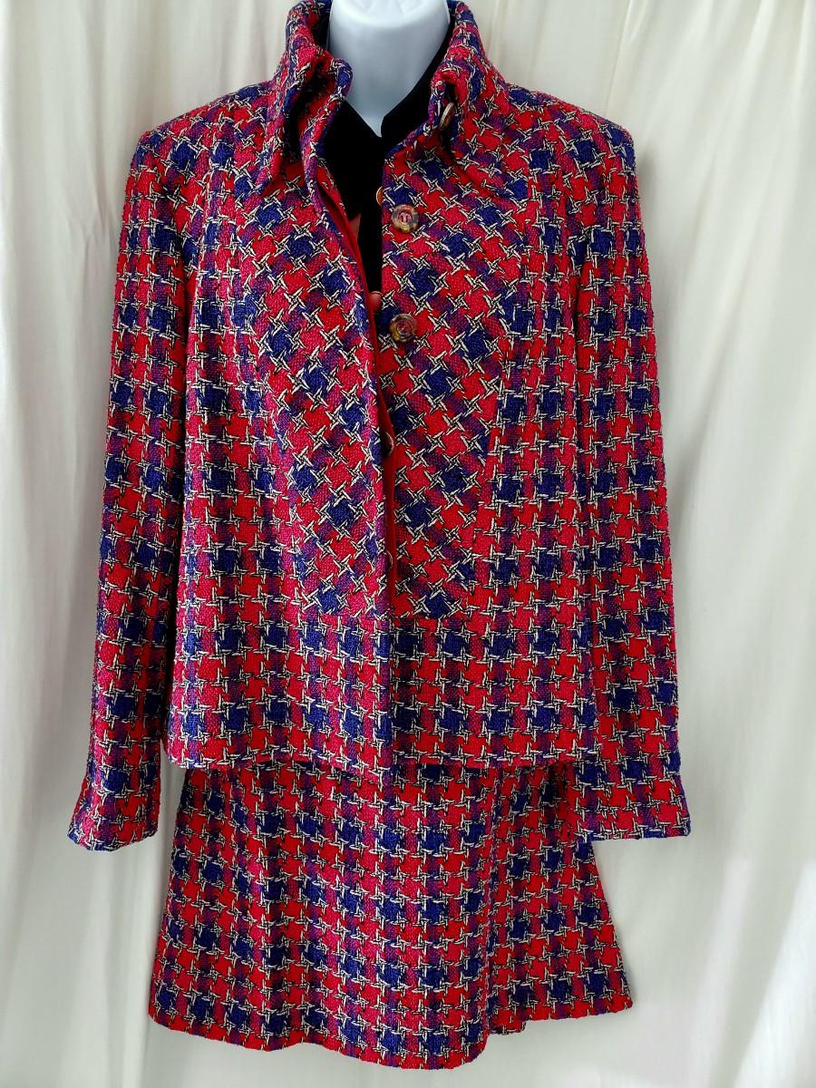 Bold red, pink & blue tweed. New/old, with tags. Original tag price $6250.