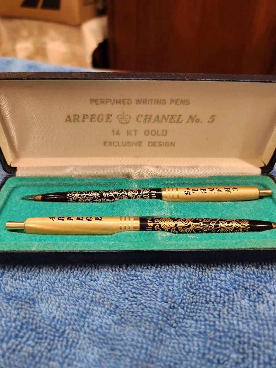 Neat vintage pen set in original box. Chanel #5 scented pens.
