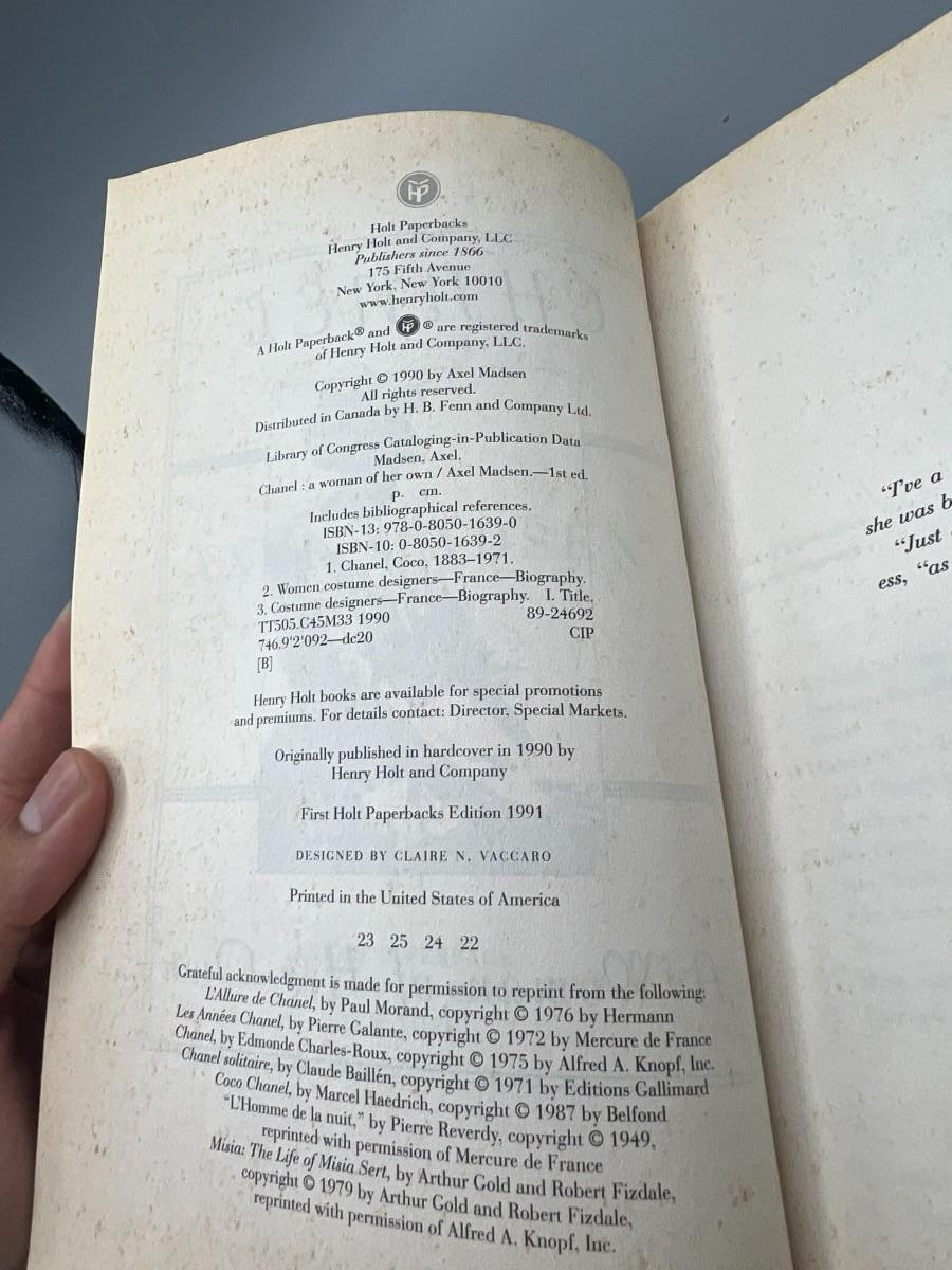 Chanel A Woman of Her Own by Axel Madsen in paperback. Biography about one of the most famous women of fashion.