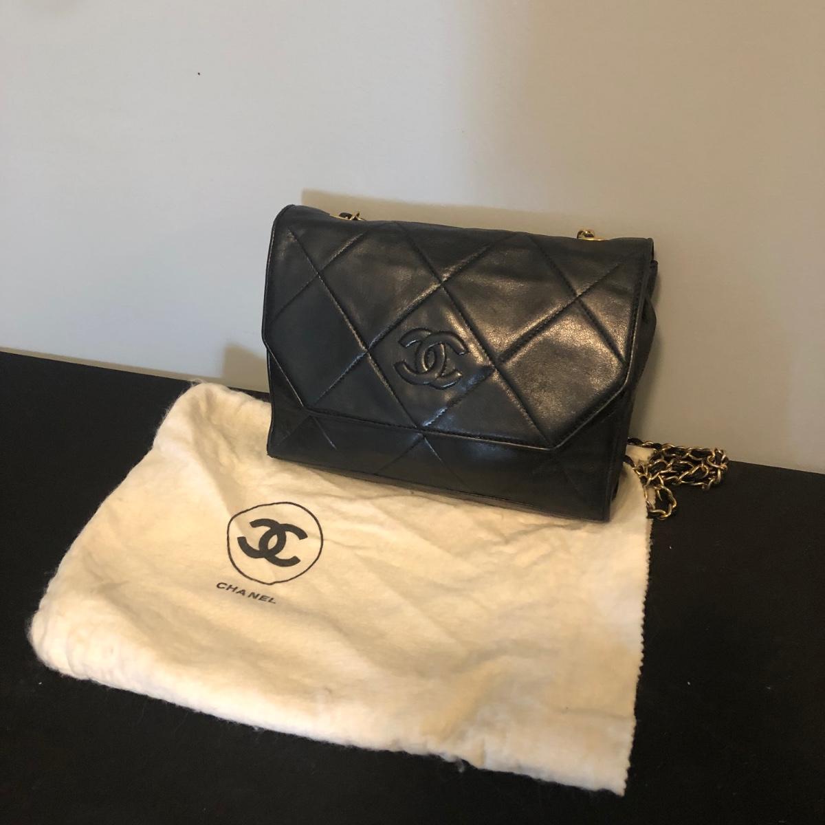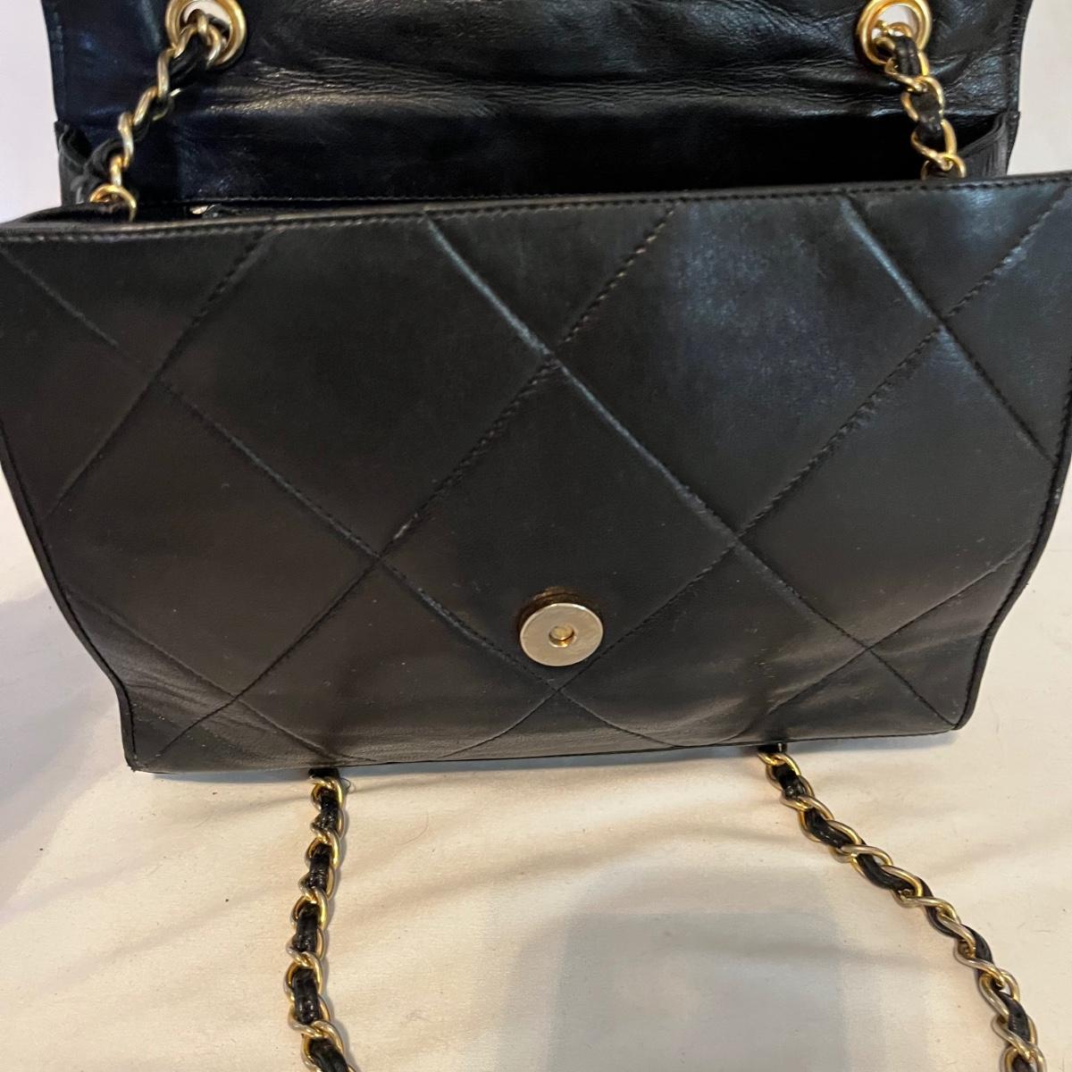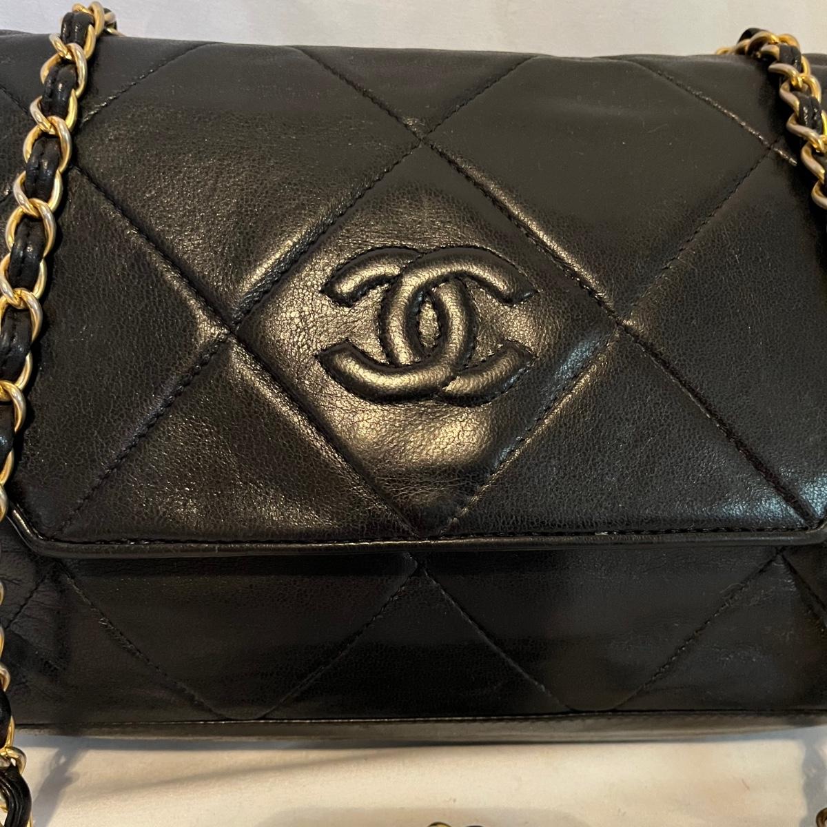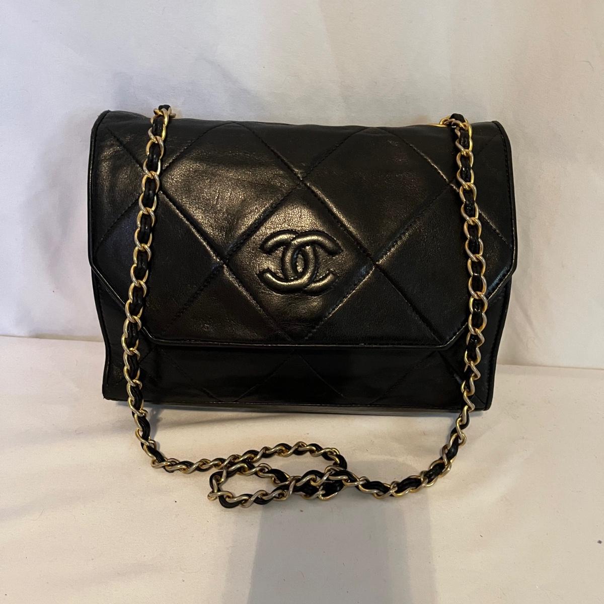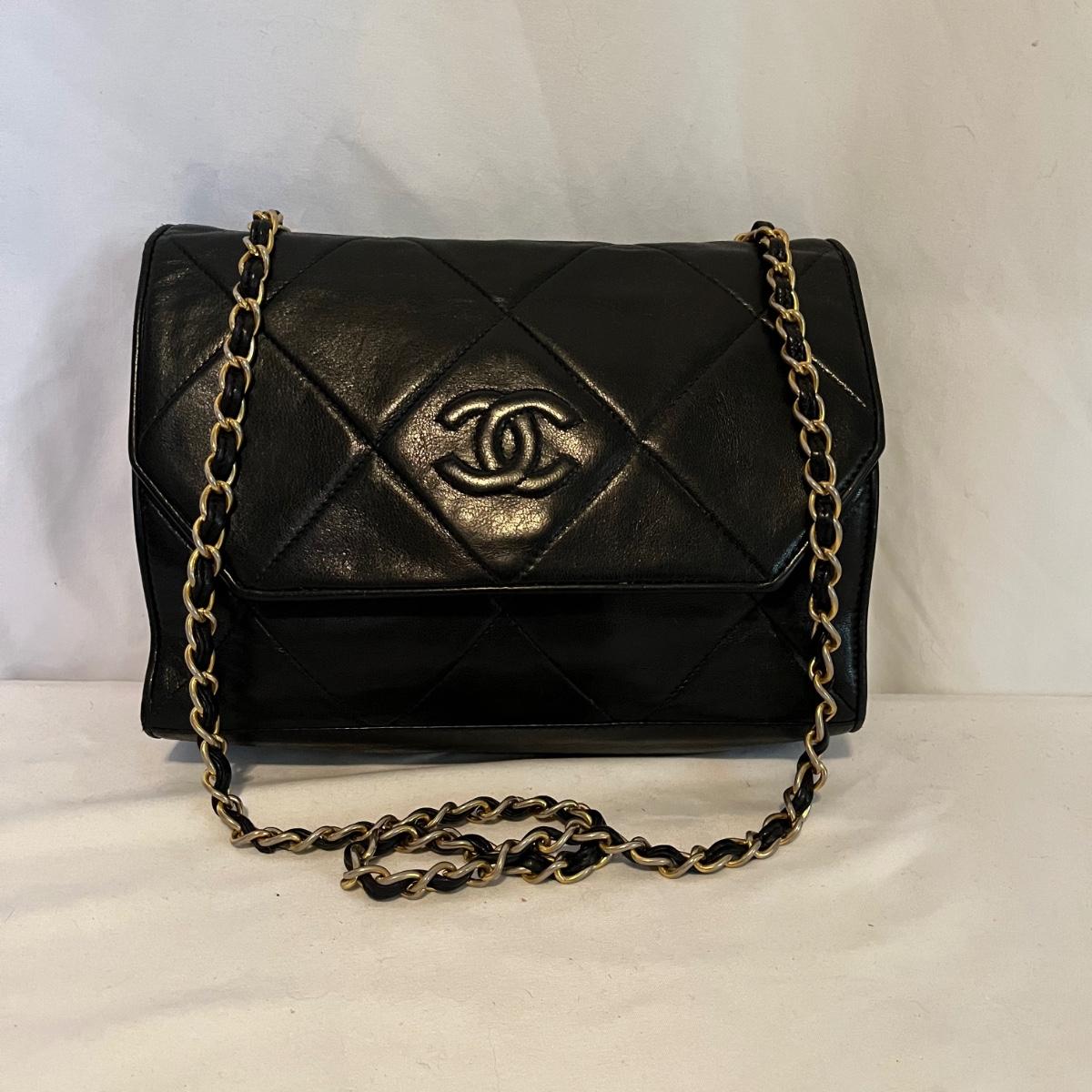 Lot includes a black leather Chanel bag with a chain and leather shoulder strap.