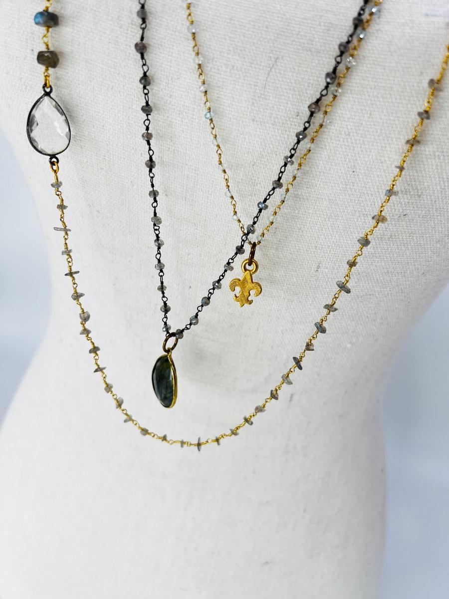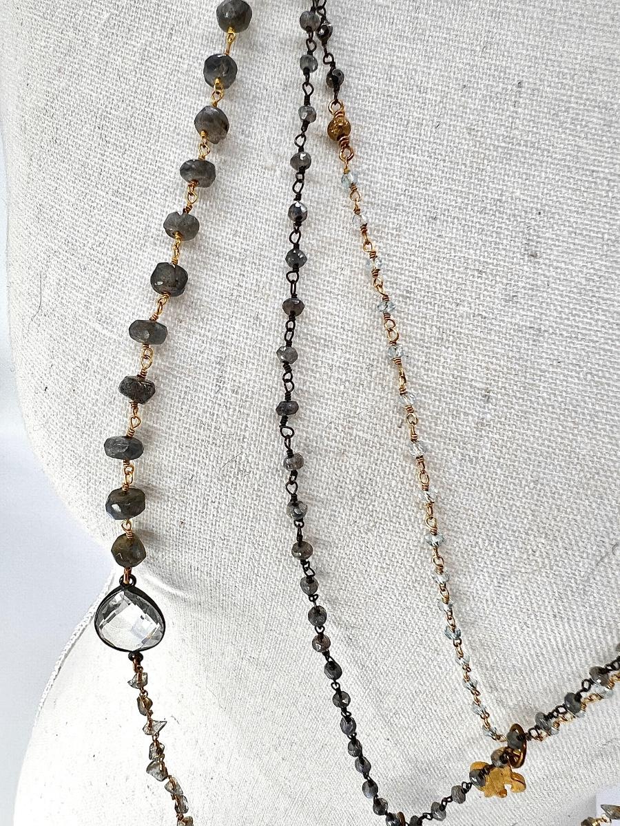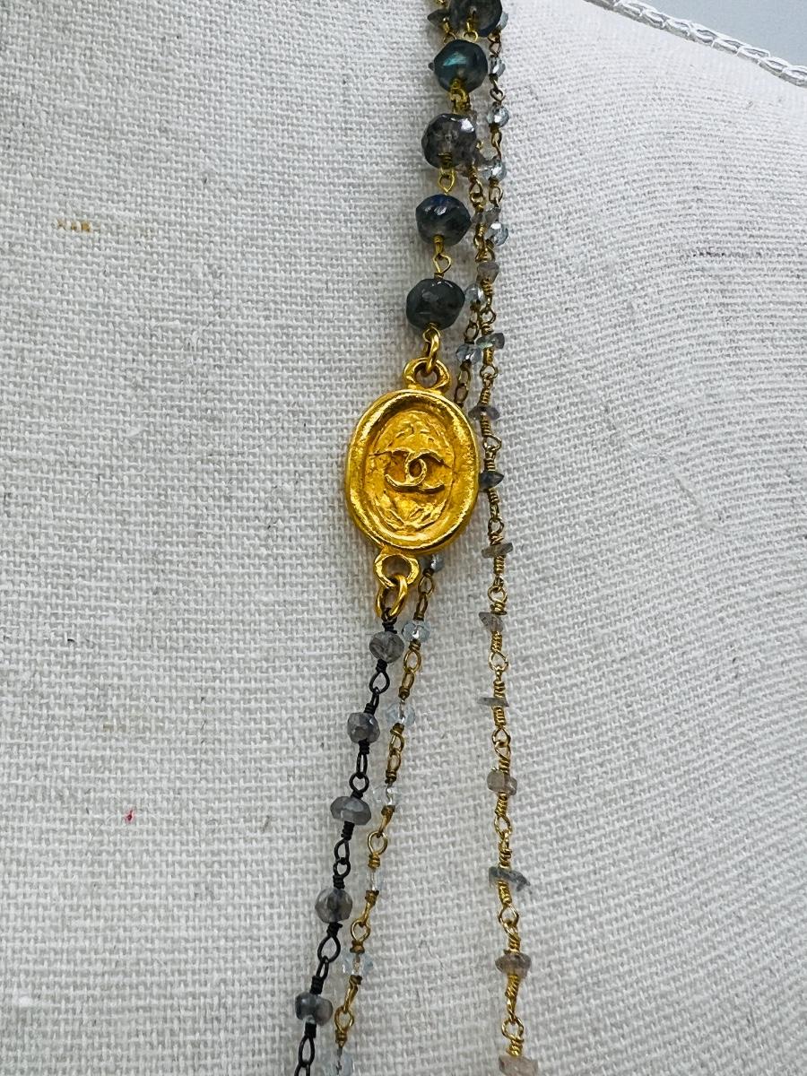 Fashion Chanel ~ long 3 layered necklace with a hook back. 32” with a 1.75” extension. Estate of Elizabeth Kinsley