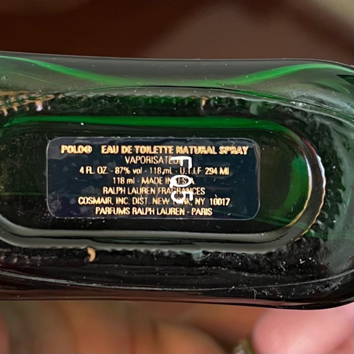 Chanel N*5 Eau de Parfum in 3.4 Fl Oz and Ralph Lauren Polo (Green) Eau de Toilette Natural Spray in 4 Fl Oz. Very little of the Polo appears to have been used.