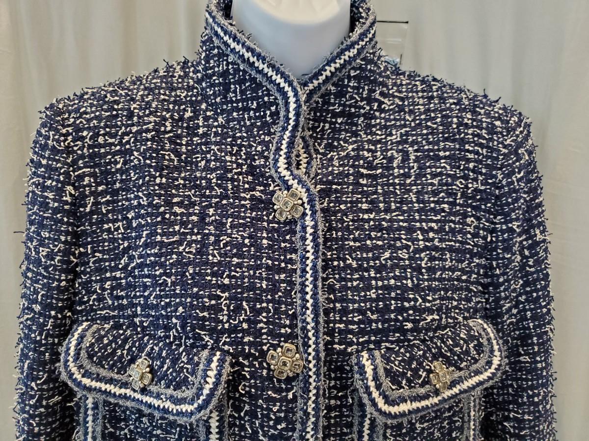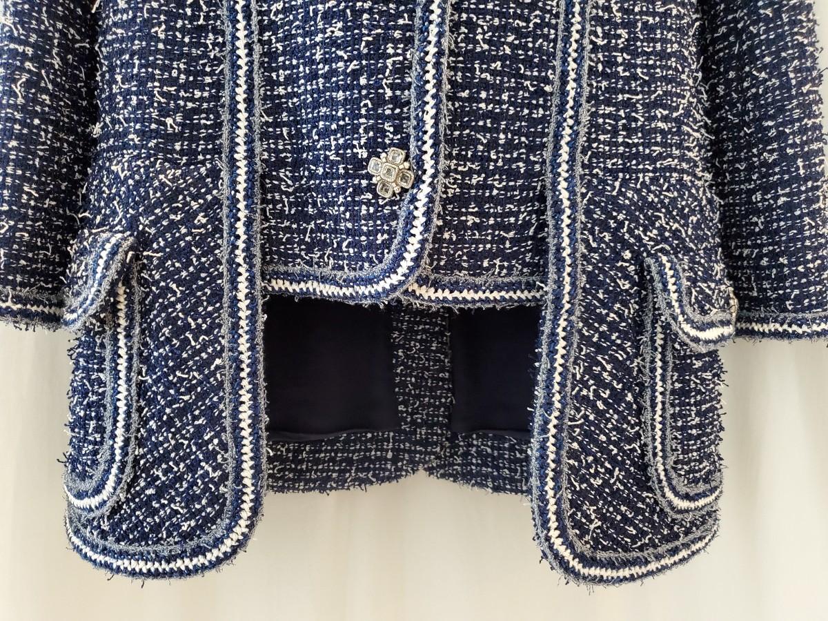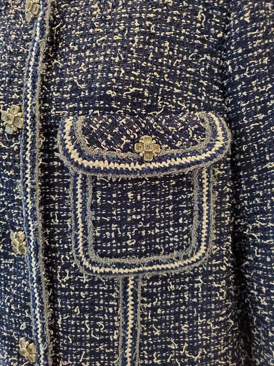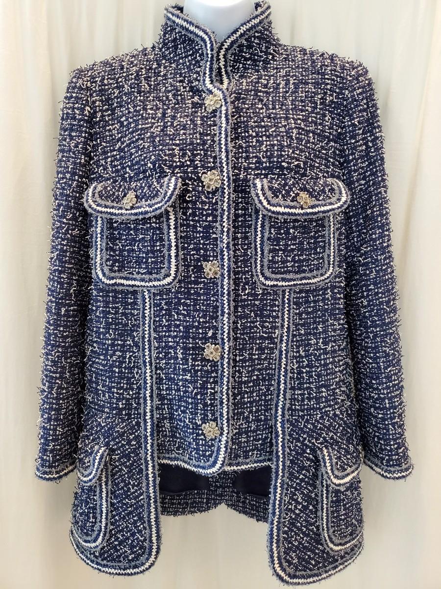 Chanel Navy Fantasy Tweed Layered Pocket Jacket
