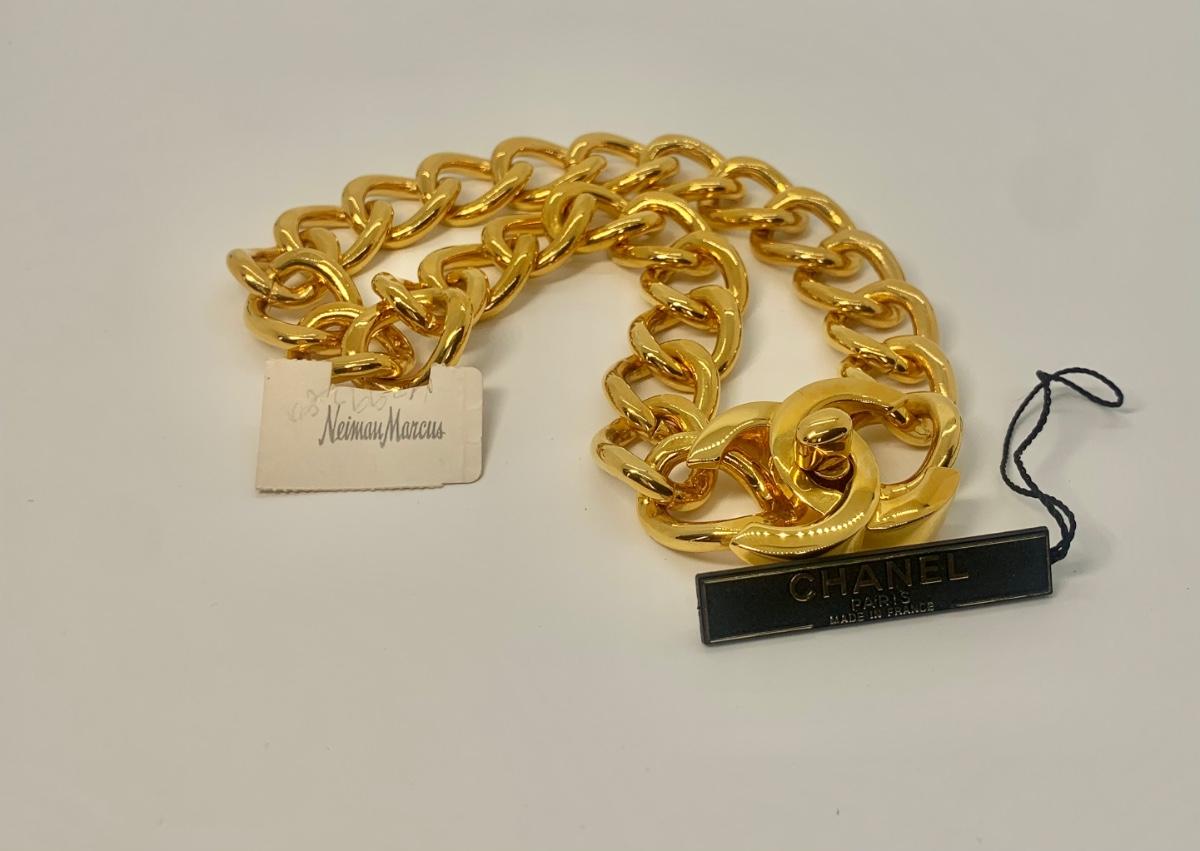 “Chanel”  Nieman Marcus Goldtone Big Bold Link Choker Style Necklace 17"