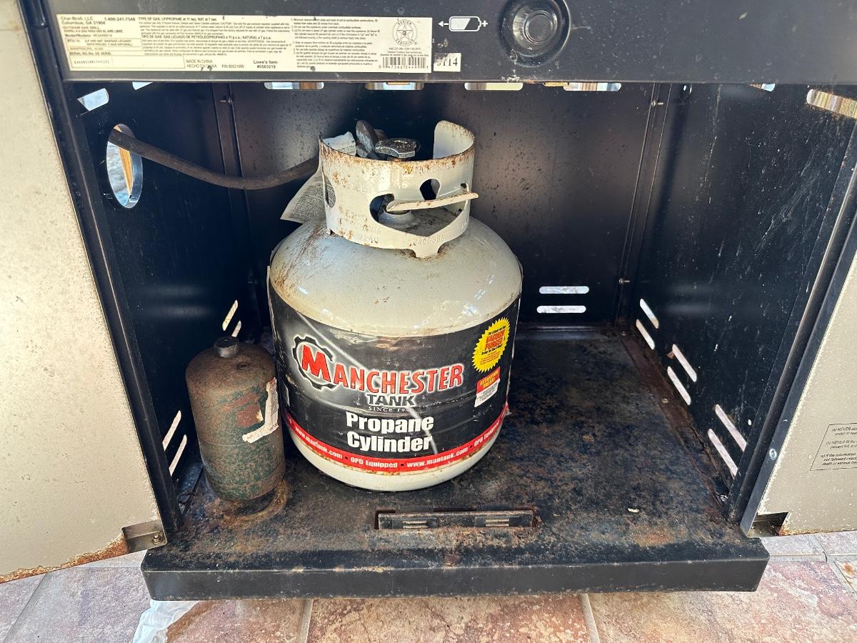 Char broil BBQ with bottle. Has normal wear.