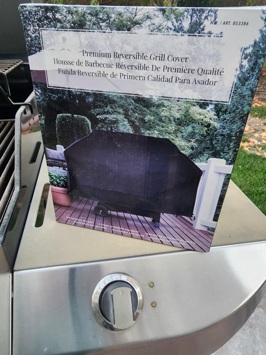 4 burners plus griddle. Includes propane tank, bonus cast iron skillet and grill cover. Also ones with owners manual. Looks lightly used.