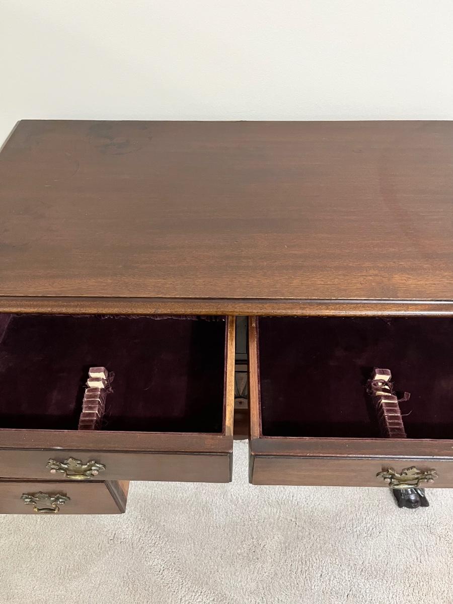 4 Drawers have velvet lining as seen in photos the 2 top drawers are missing a few of the wood dividers ~ Drawers slide easily