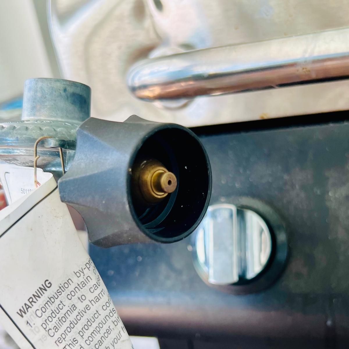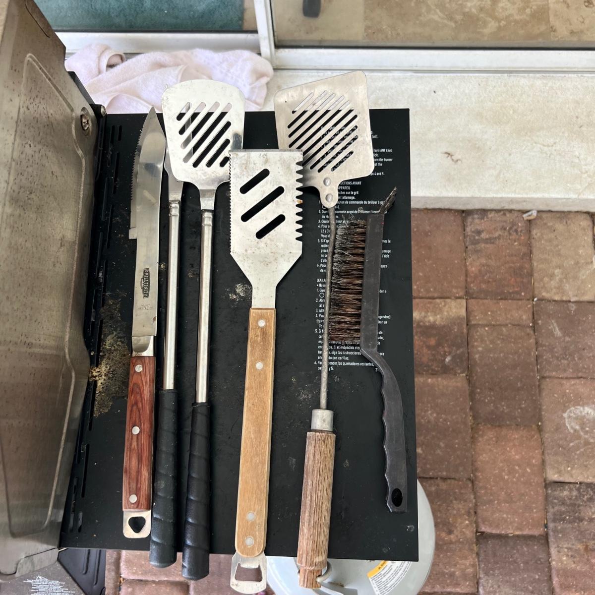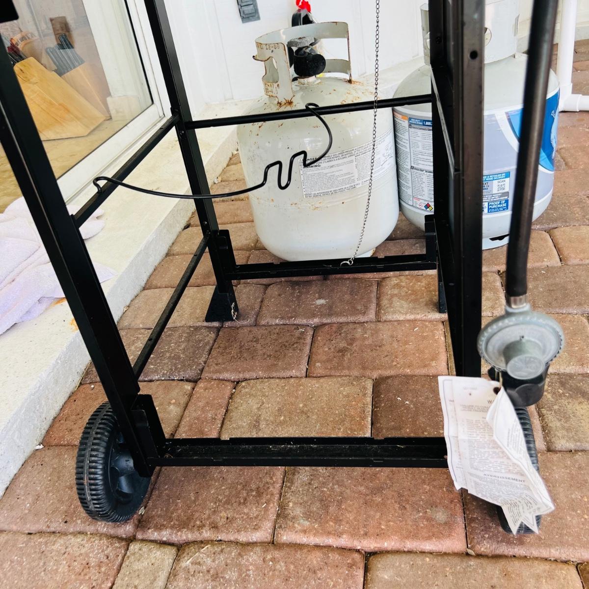 Char-Grill American Gourmet Grill. Model: 465635621. Includes two propane tanks and grilling utensils. Working condition, needs cleaning. Rhino propane tank not included.