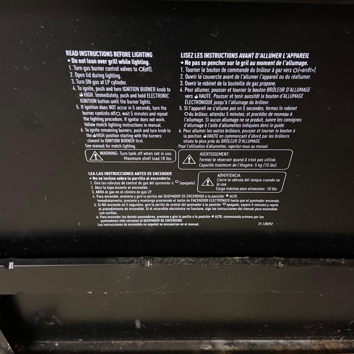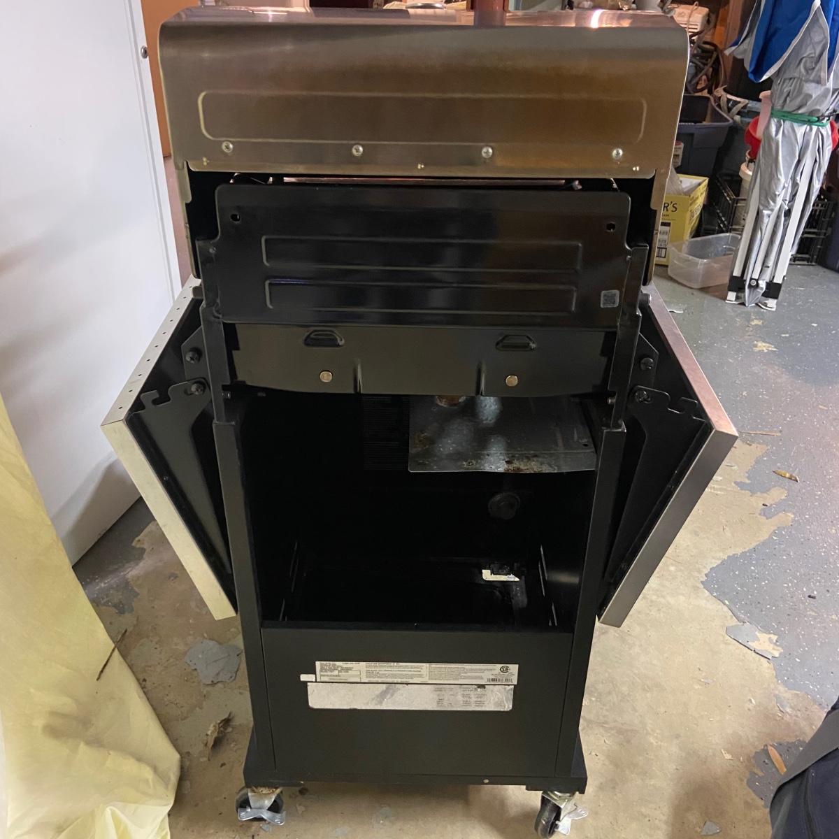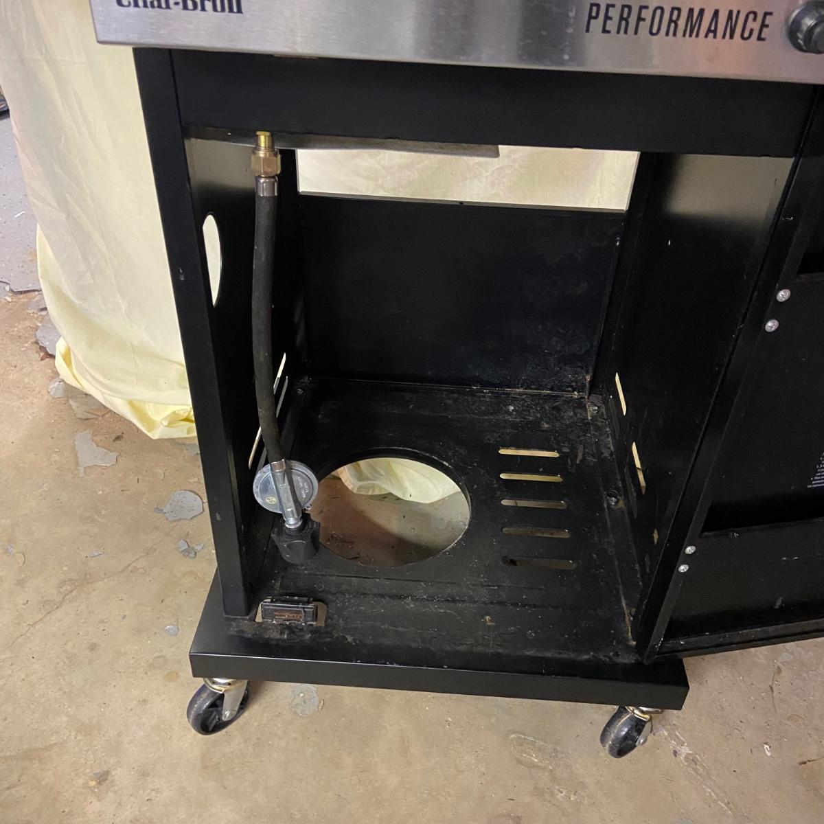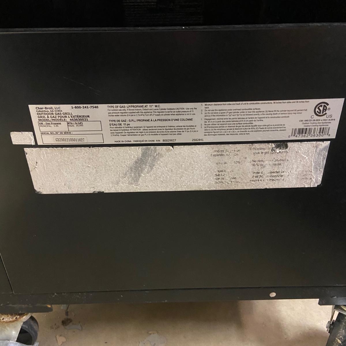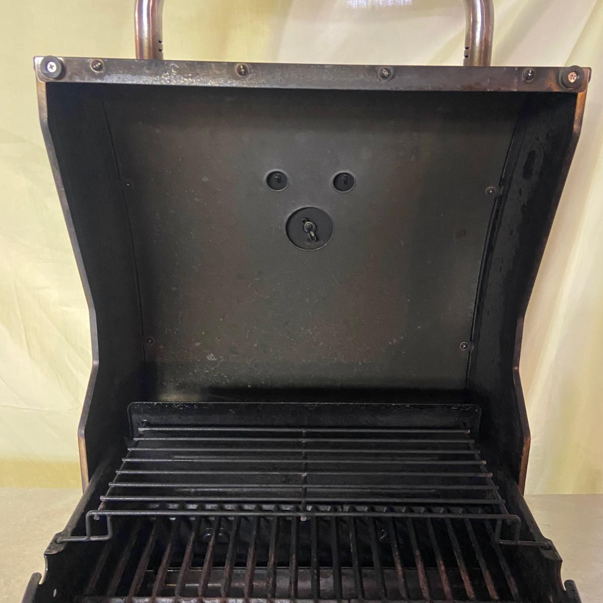 This lot contains a ‘Char-Broil’ two burner gas grill. The entire grill sits on four wheels and is incredibly easy to move. On each side of the grill are shelves that compact if desired. There is a thermometer on the top of the grill and grease trap beneath the grill. There are two burners and two knobs. This grill also comes with a cover. This item measures 28” across with the shelves down, with them up it measures 44.5” x 22” x 45.5”H. Local pick up only. Winning bidder must bring assistance to help move and load this item due to its weight and/or size.