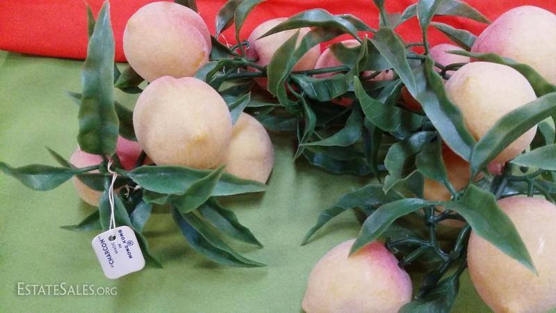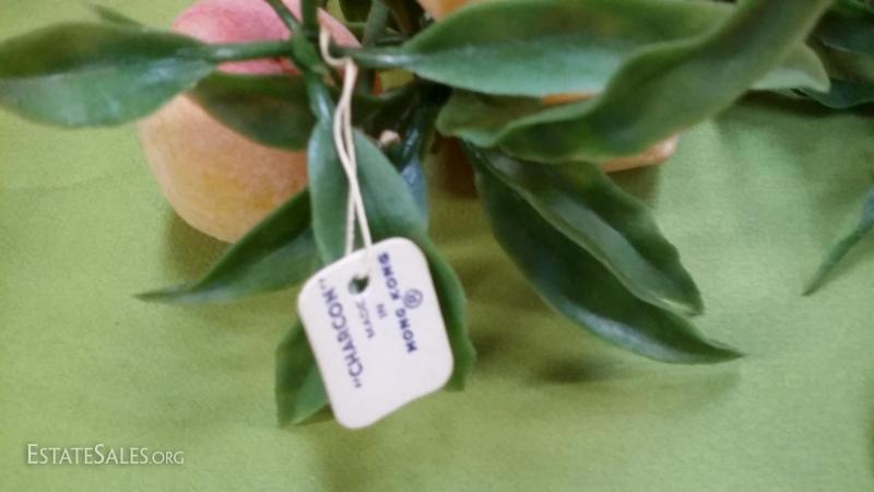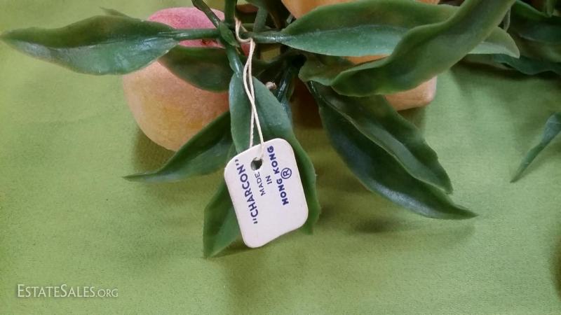 Charcon 1960s peach or possibly apricot vine made in Hong Kong-This plastic-coated fruit actually has the look and the feel of the real thing