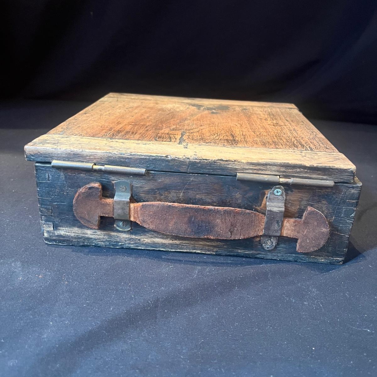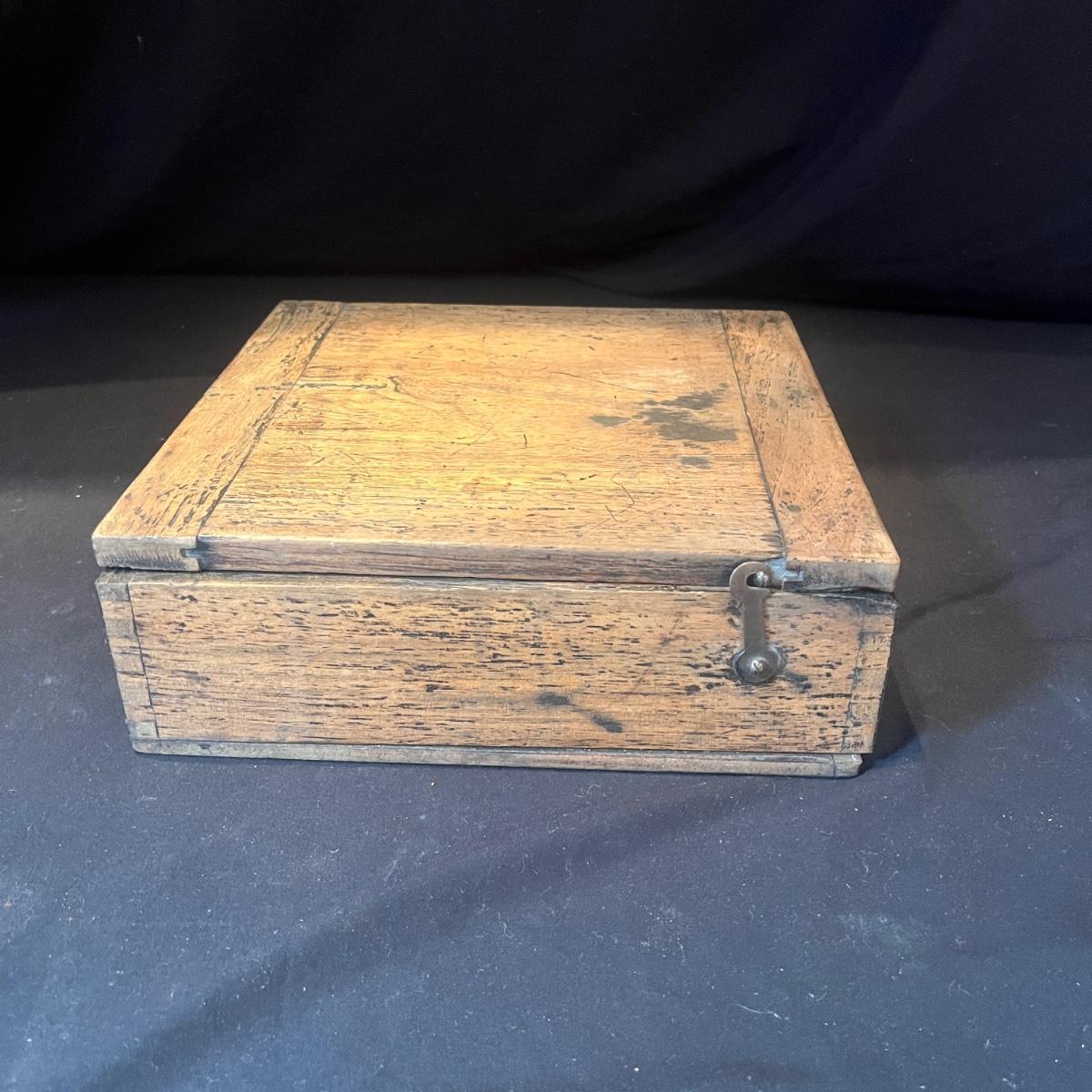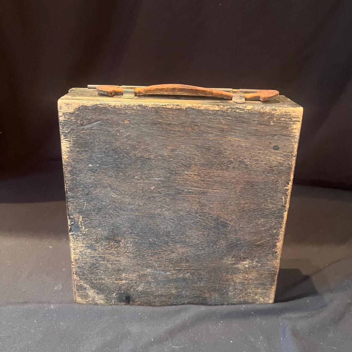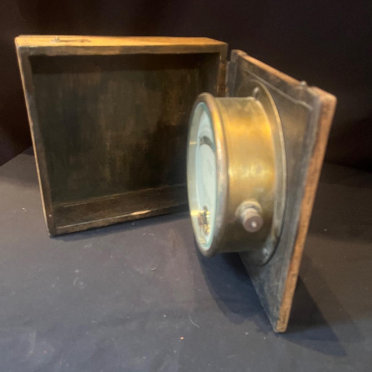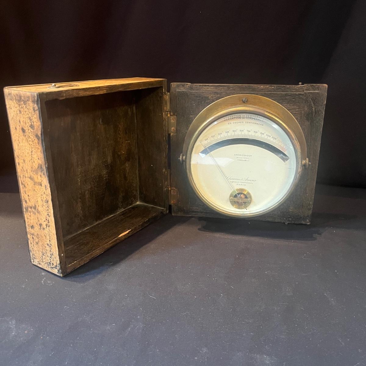 Lot includes a Chauvin & Arnoux Antique temperature gauge in a wooden dovetailed carrying case. Case measures 8.5” x 8.5” x 3”H.