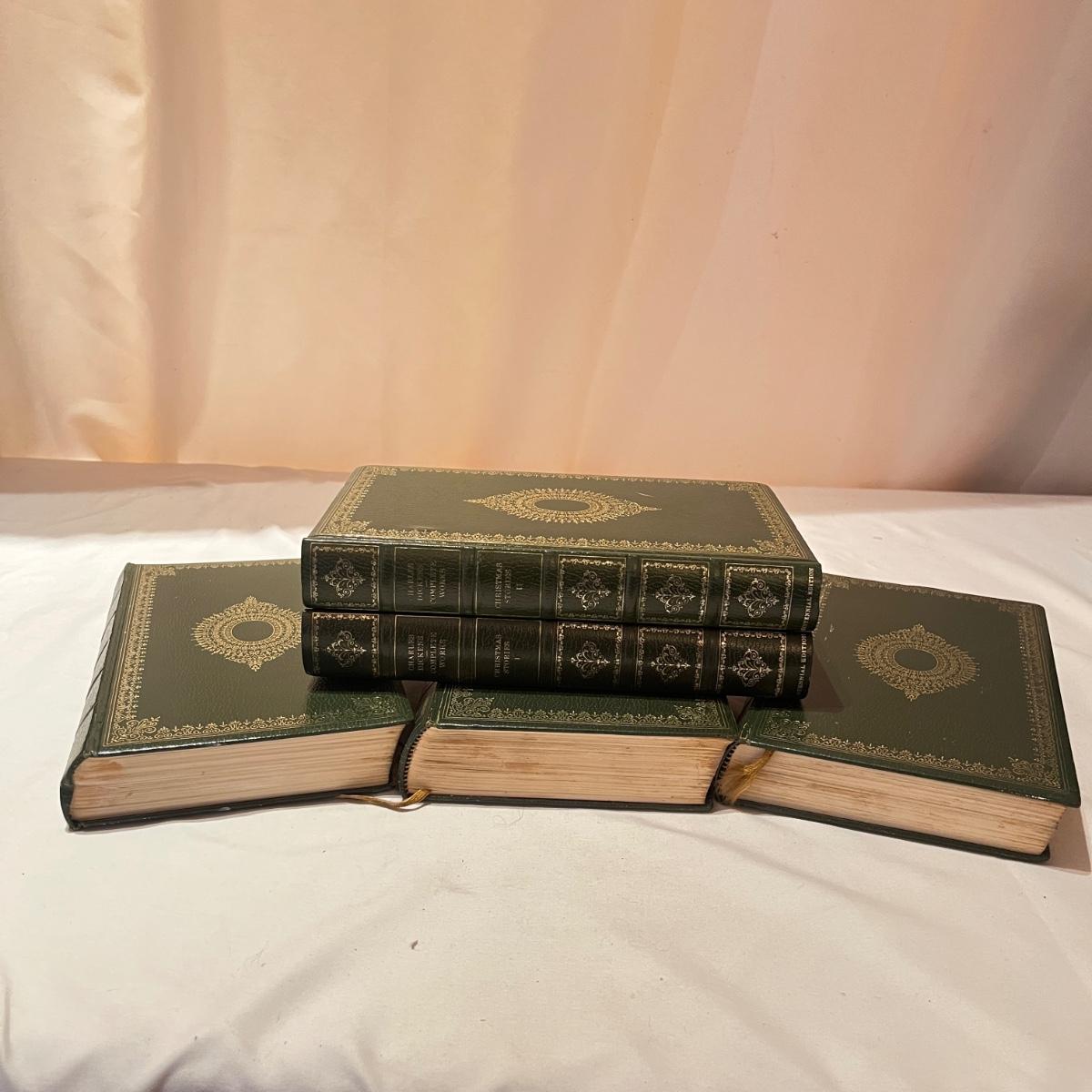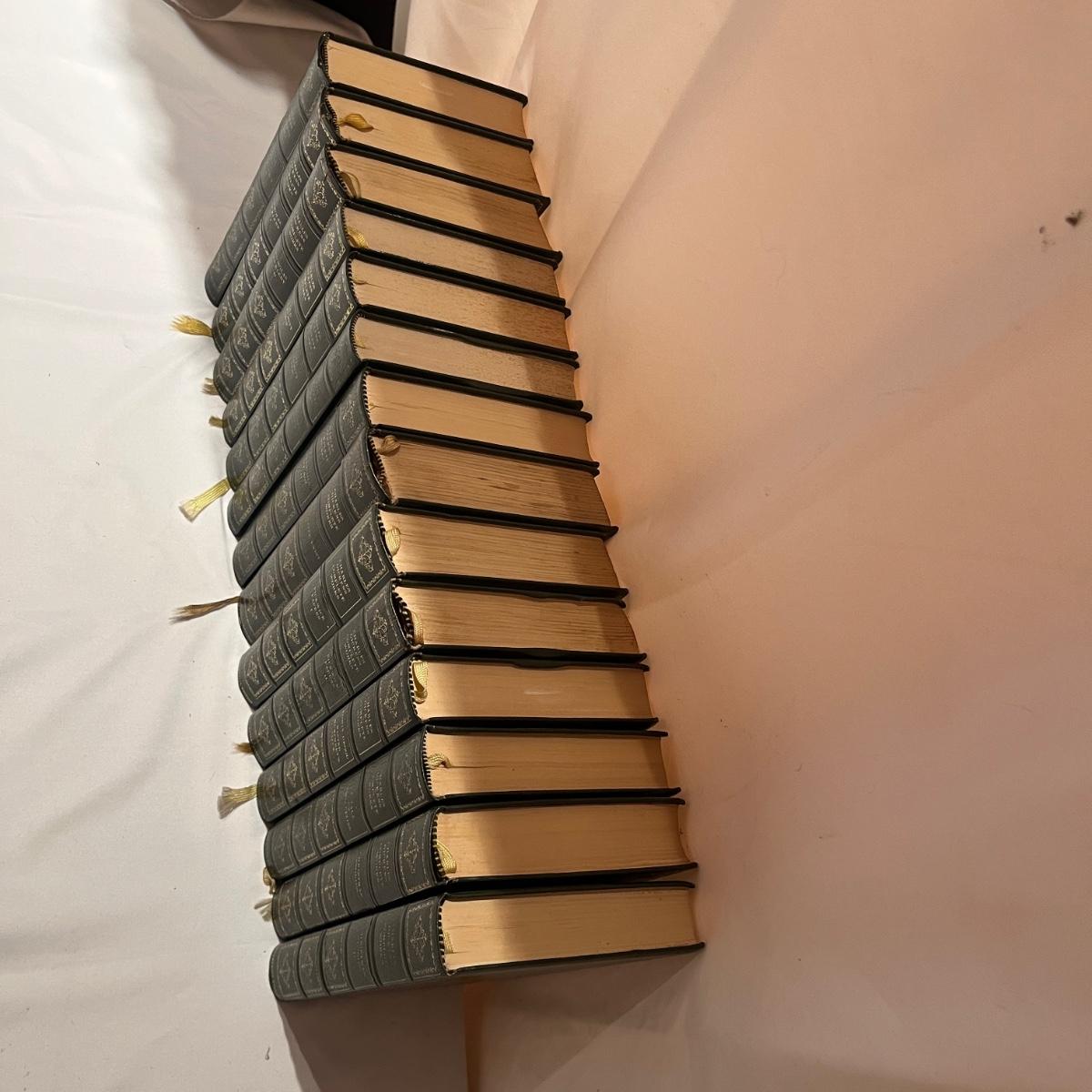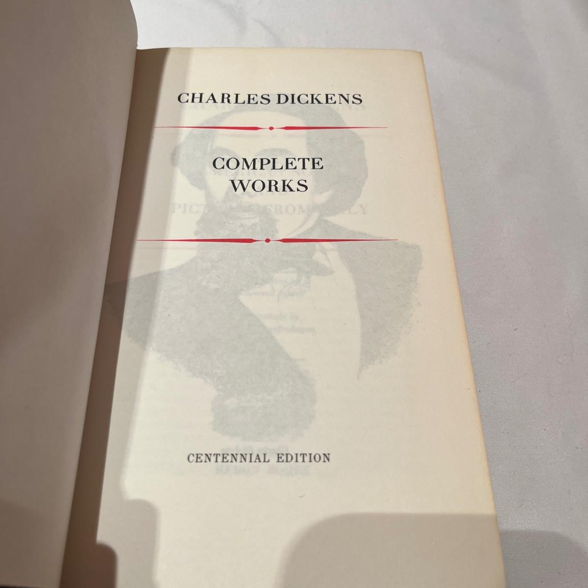 This Charles Dickens Centennial Edition book contains 14 books including Oliver Twist, American Notes, A Tale of Two Cities, Pickwick Papers & More. Each book measures 5” x 1.5” x 8”H. A few books have spotting on the tops, see pictures for other conditions including binding.