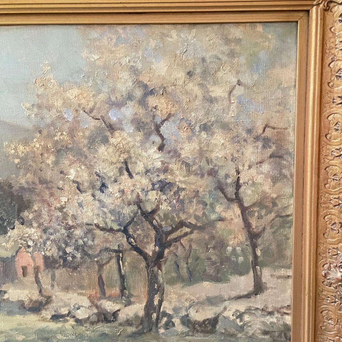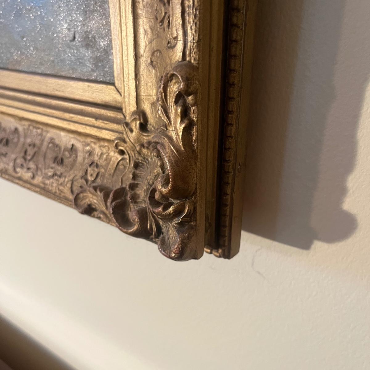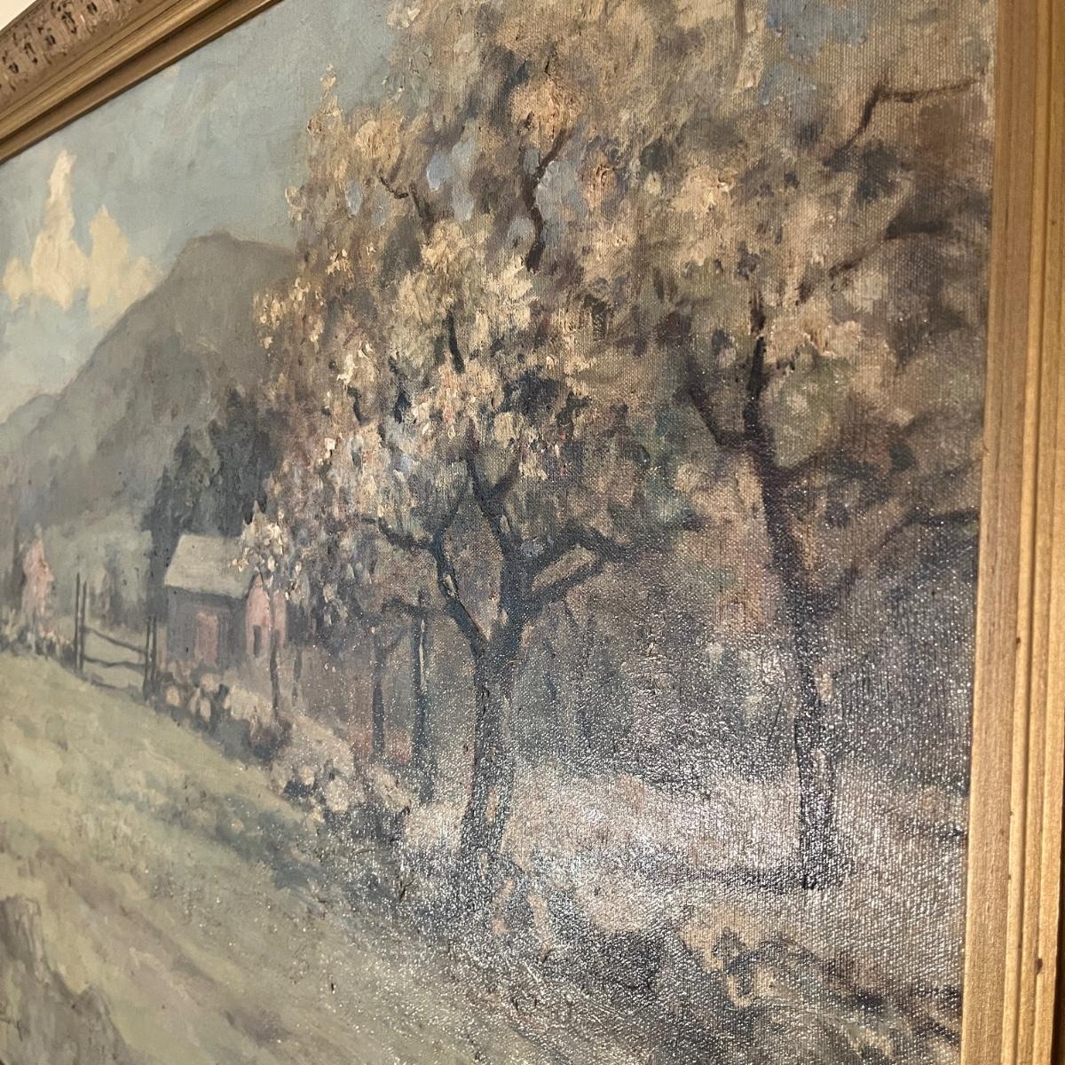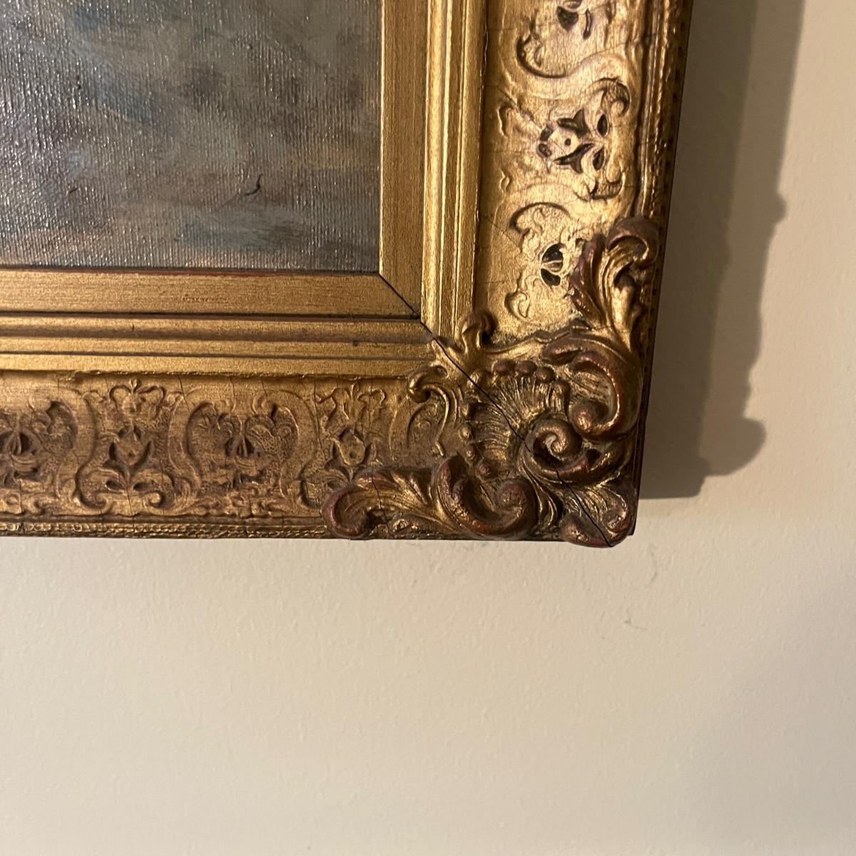 This signed C.E. Buckler (likely Charles E. Buckler) oil painting is titled The North Meadow and is framed in an ornate wooden frame. Frame measures 35” x 29.5”H.