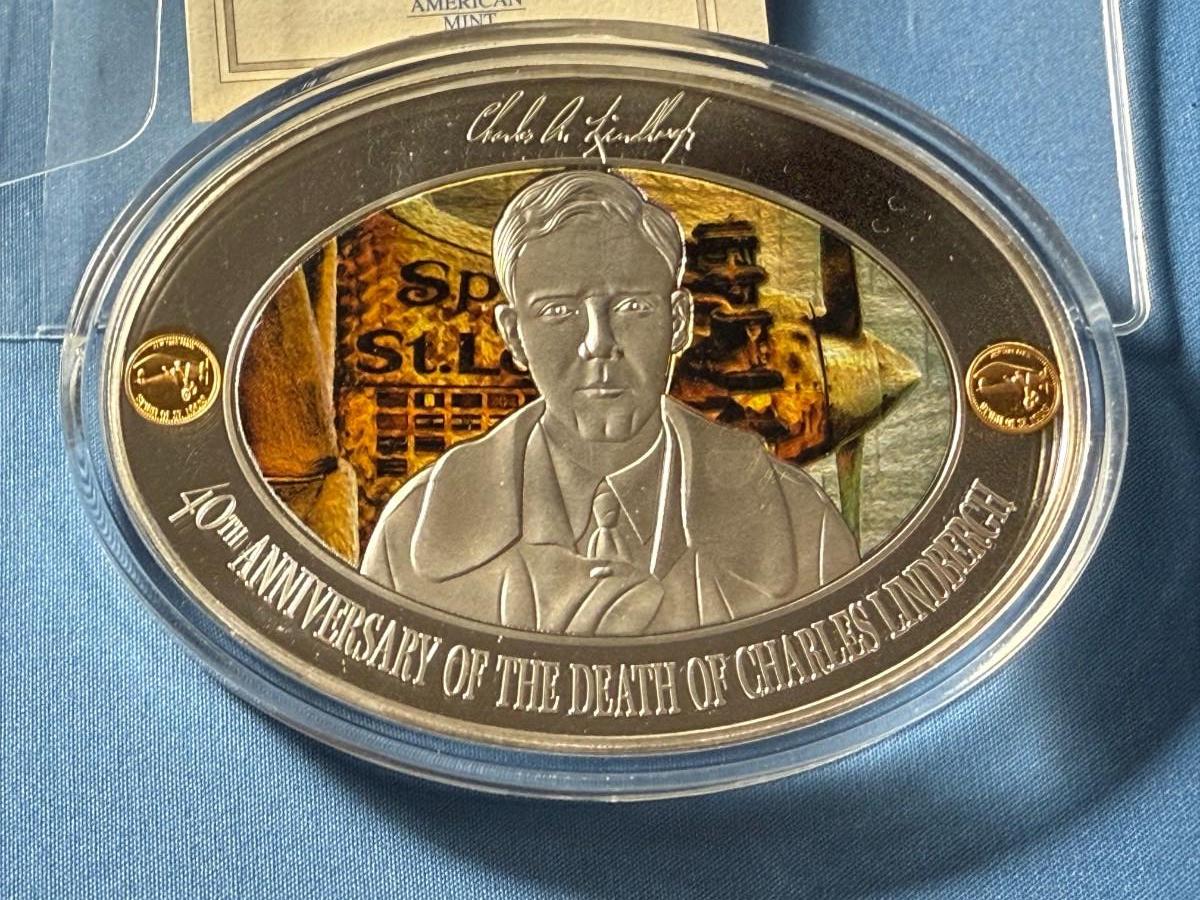 Charles Lindbergh 40th Anniversary Memorial Huge Medal by the American Mint in Excellent Condition as Pictured.