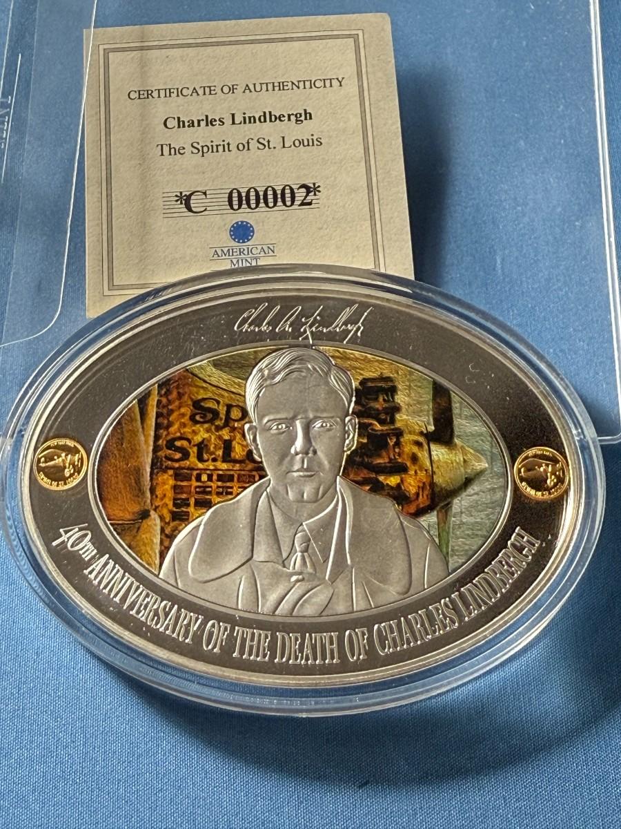 Charles Lindbergh 40th Anniversary Memorial Huge Medal by the American Mint in Excellent Condition as Pictured. $5 DOMESTIC SHIPPING.