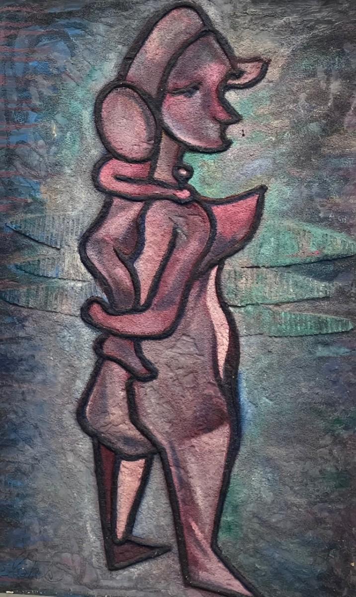 Descritpion: Charles Melohs Granular in Color Mother and Child; Measurements: 43.5x28 inches