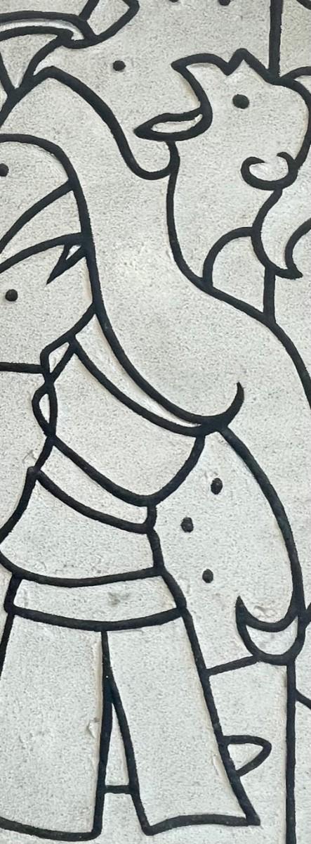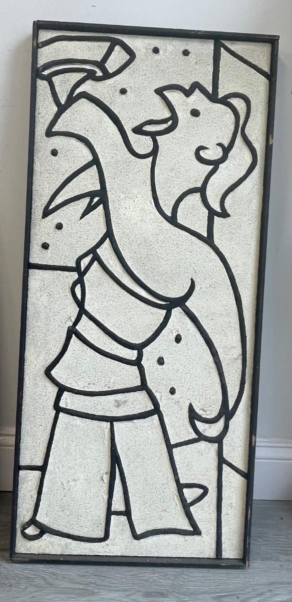 Descritpion: Charles Melohs Off White Granular w/ Black Drawing; Measurements: 36.75x16.5 inches
