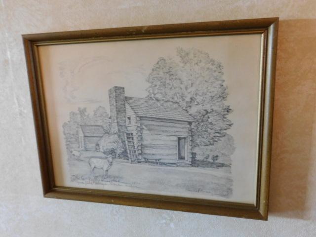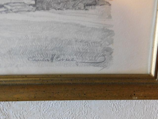 Charles Overly Pencil Framed Art 'The McGuffey Homestead' Dearborn, MI  15"x12"