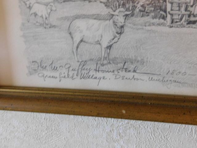 Charles Overly Pencil Framed Art 'The McGuffey Homestead' Dearborn, MI 15"x12"