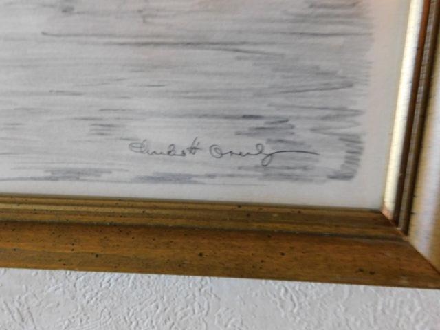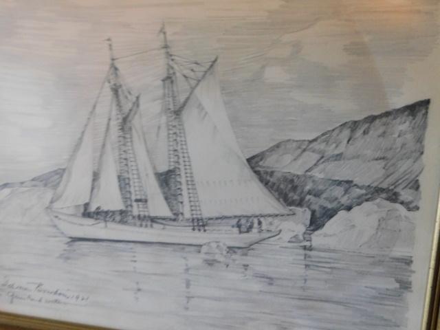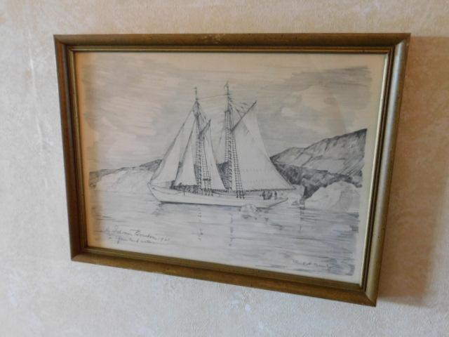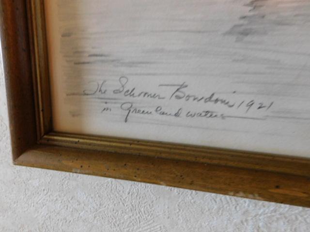 Charles Overly Pencil Framed Art 'The Schooner Bowdoni in Greenland Waters'  15"x12"