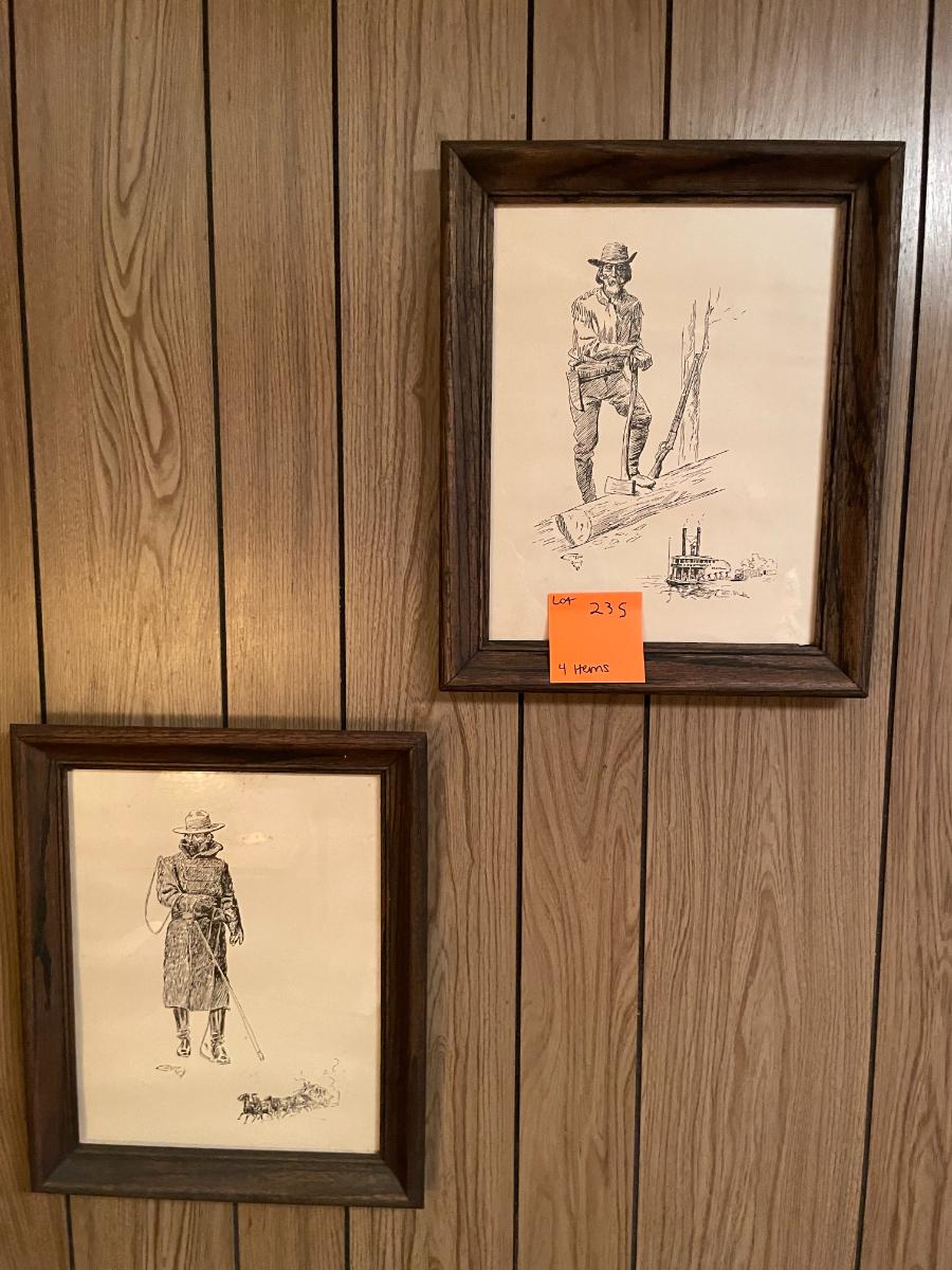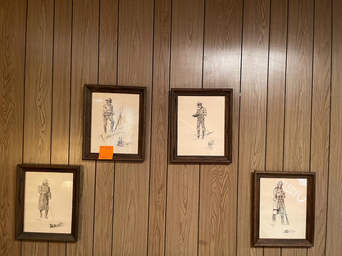 Charles Russell Sketch Prints Lot of 4 includes "The Stage Driver", "Wood Hawk", "The Prospector", "The Trapper"