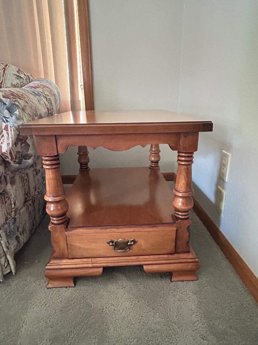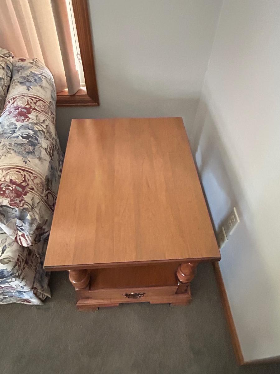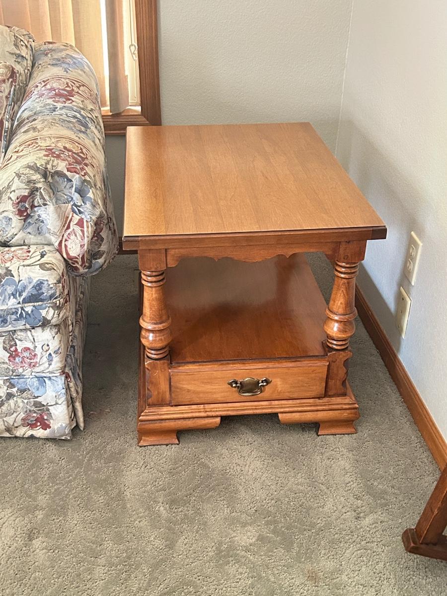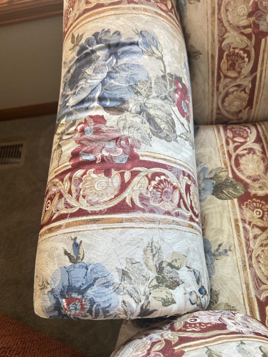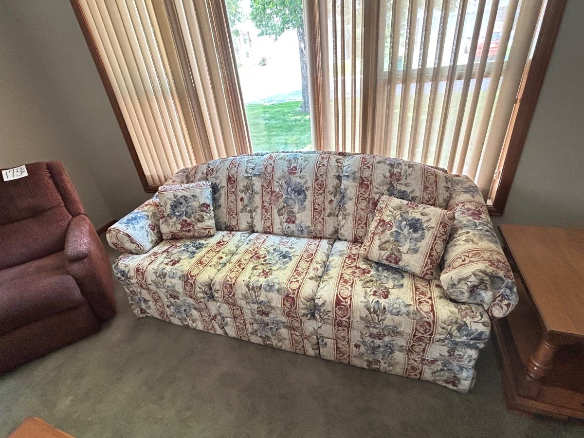 CHARLES SCHNEIDER SOFA AND COLONIAL EARLY AMERICAN ACCENT TABLE