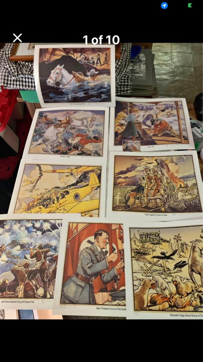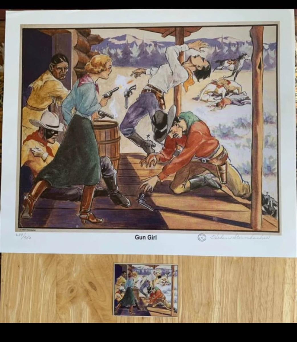 vintage lithograph, Charles Steinbacher, Lone Ranger art, WWII propaganda prints, estate signed artwork, Helen Steinbacher, limited edition prints, mid century illustration, Western art, historical prints