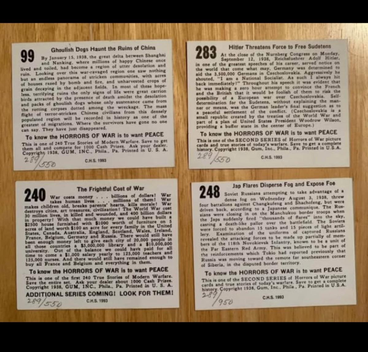 • Horrors of War series (including “Ghoulish Dogs Haunt Ruins of China,” “Hitler Threatens Force to Free Sudetens,” “The Frightful Cost of War,” “Jap Flares Disperse Fog and Expose Foe,” and “U.S. Airman Shot Down Flying for China”)