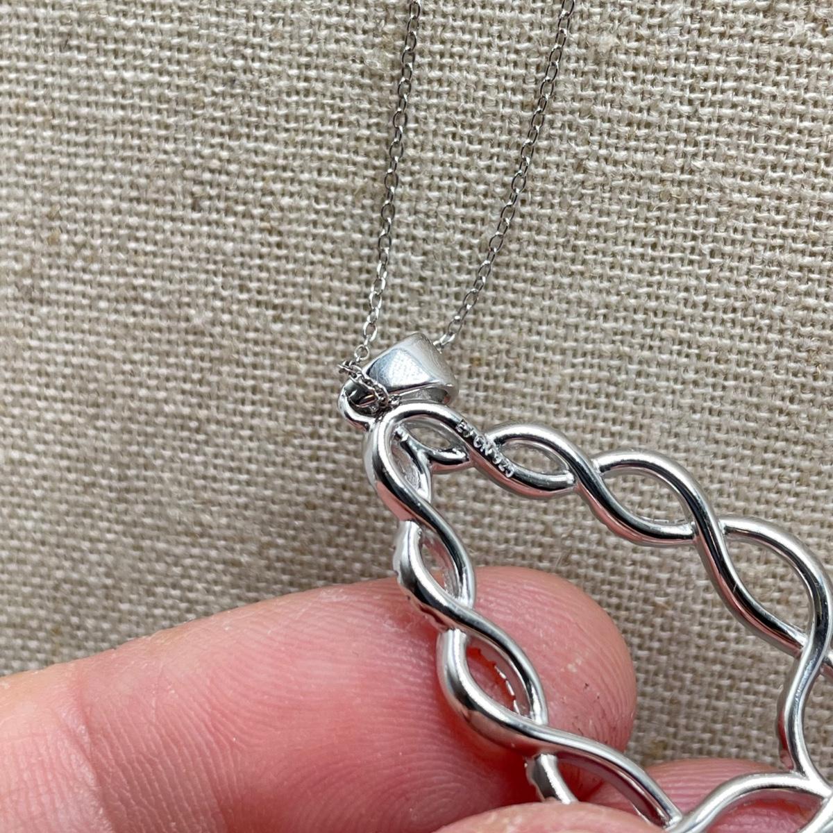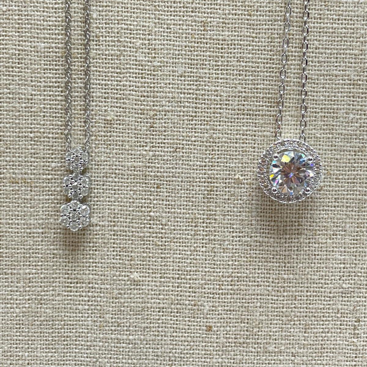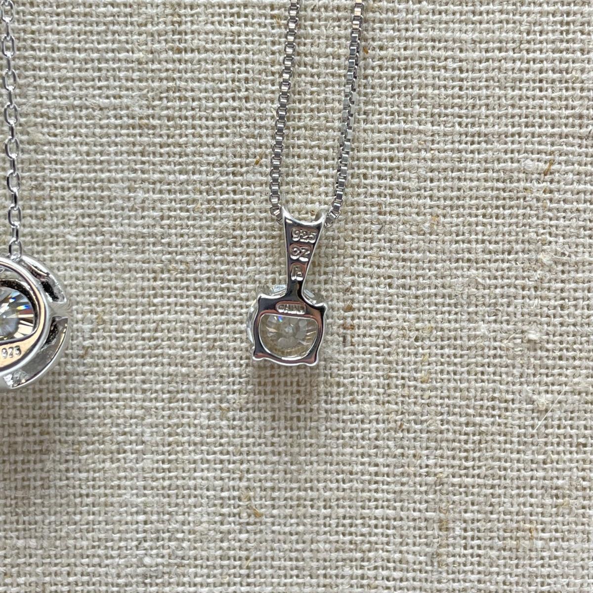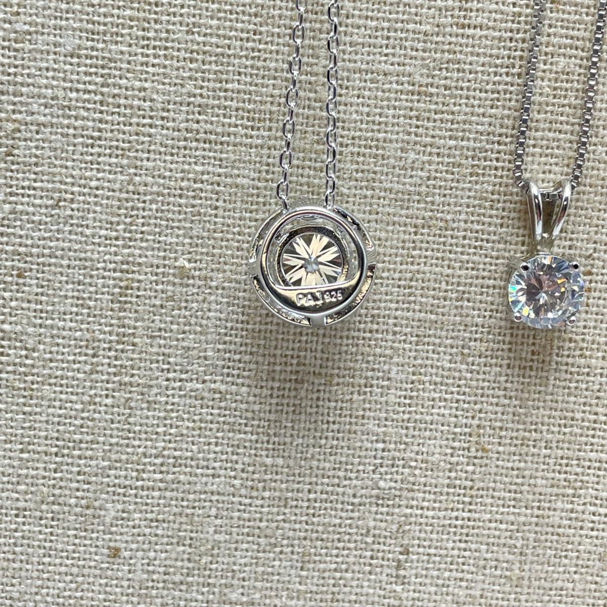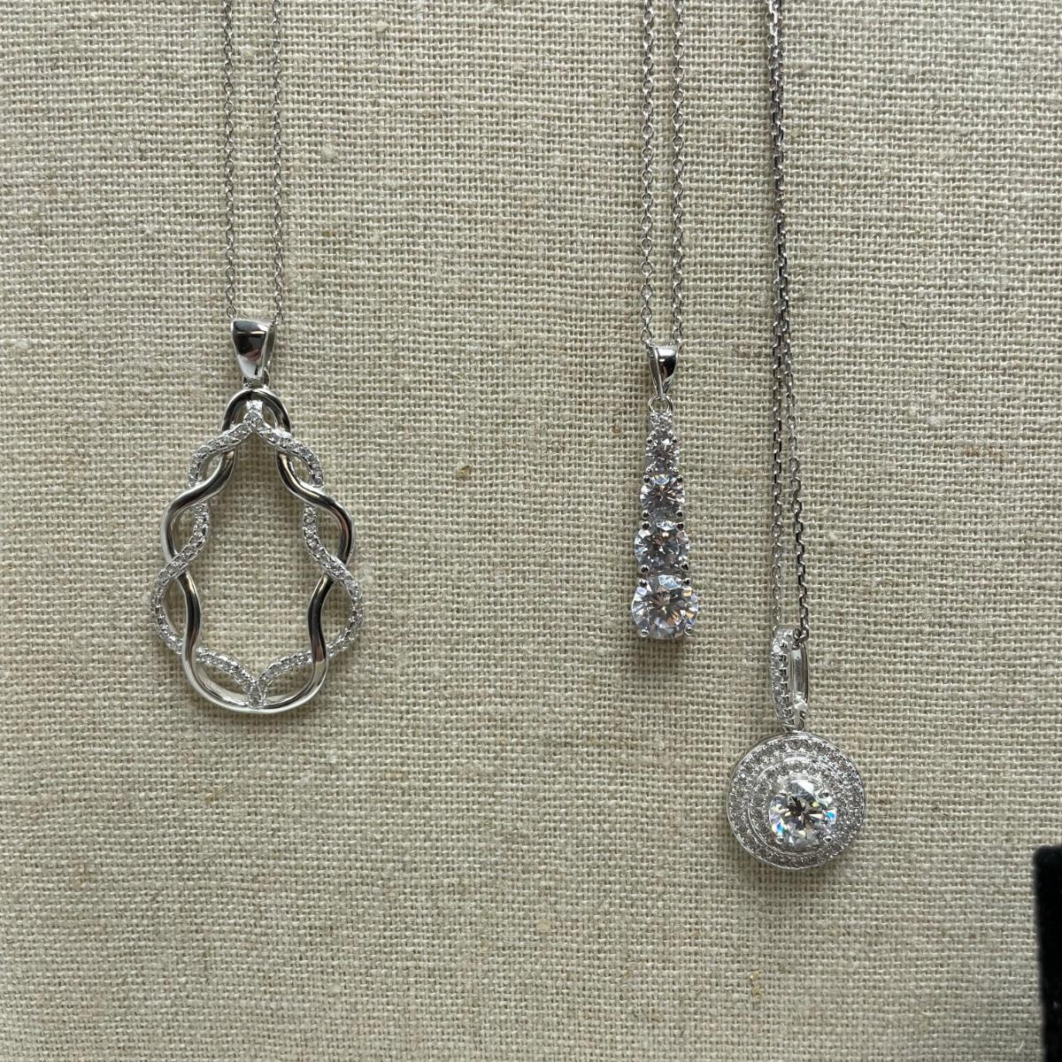 Large collection of jewelry stamped 925. The pendant shown with our diamond tester shows the gem as moissanite, most of the others are likely cubic zirconia (see cz stamps). Lot includes six pairs of earrings for pierced ears, four rings, nine necklaces and one 6” bracelet. The longest chain is about 20”. Please see photos for all markings found. We cannot guarantee the authenticity of the gemstones. All sales are final. No returns or refunds. Please bid accordingly.