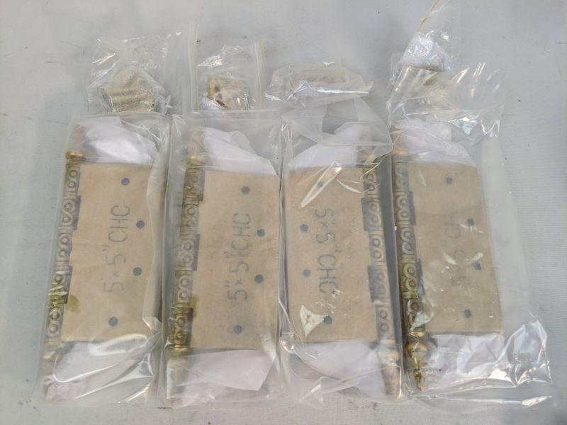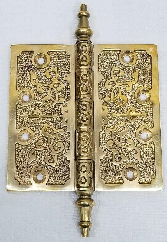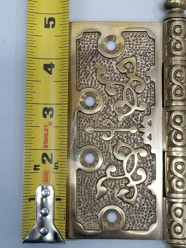 4 Charleston Hardware 5"x5" Ornate Brass Hinges with Steeple Pin, Qty 4