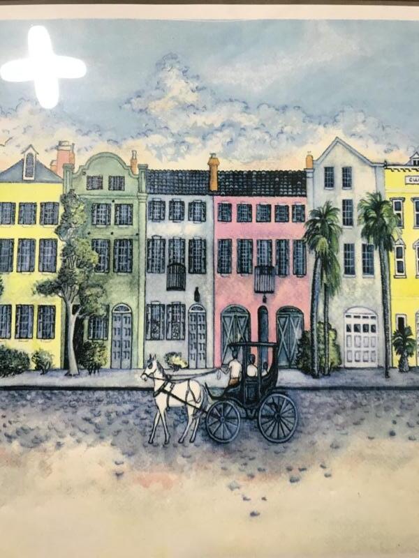 Charleston watercolor of rainbow row